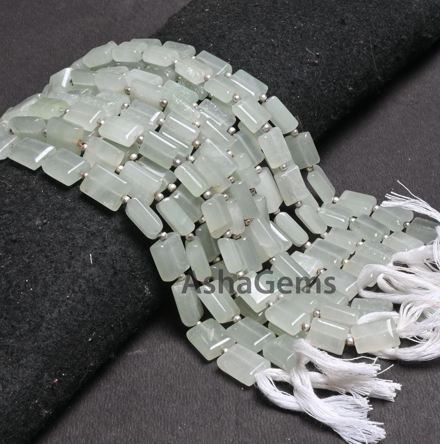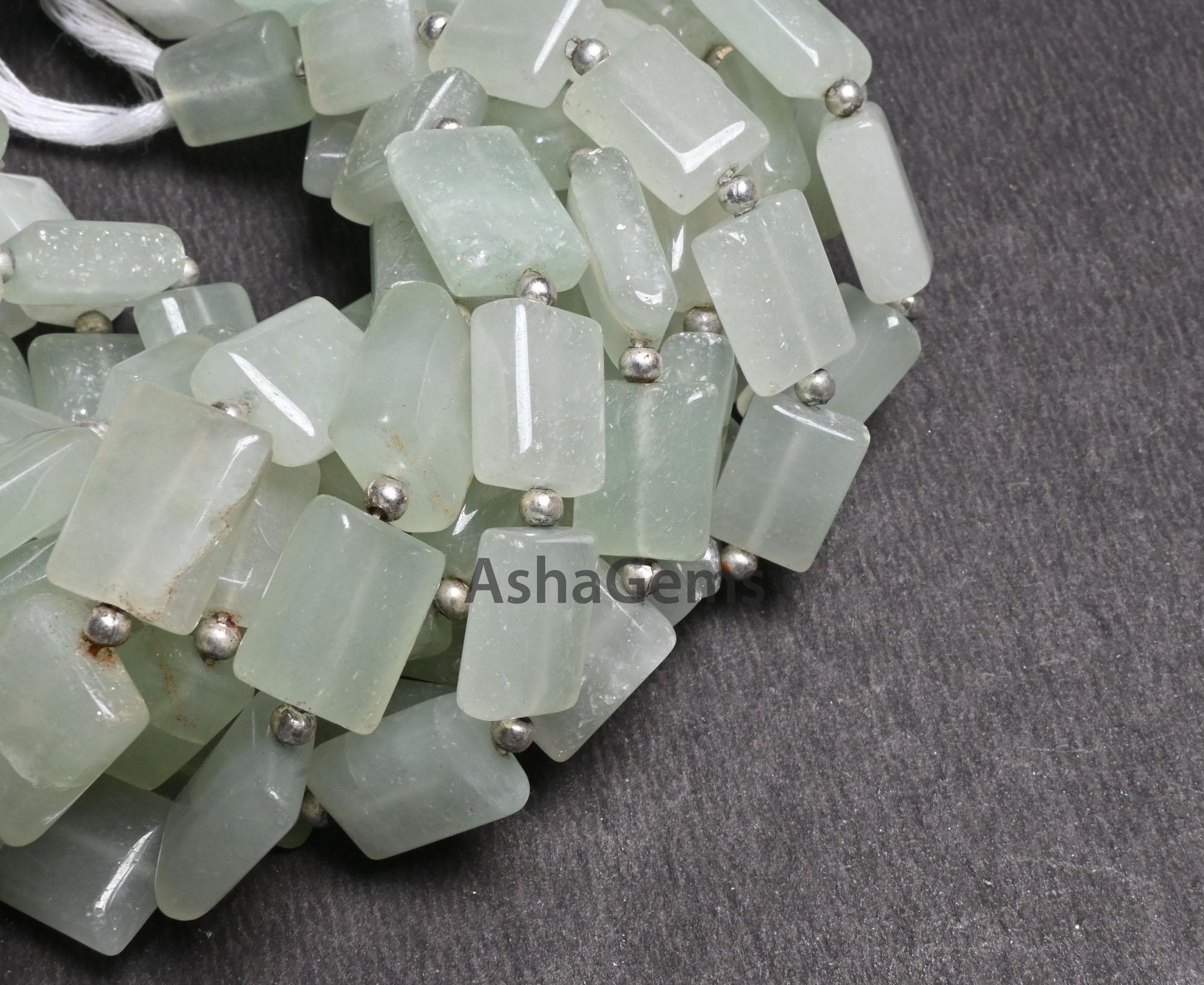 Light Green Aventurine Smooth handmade Rectangle Shape Beads,9" Fine Aventurine Chicklet Straight Drill Gemstone Margaj Beads Jewelry Crafts