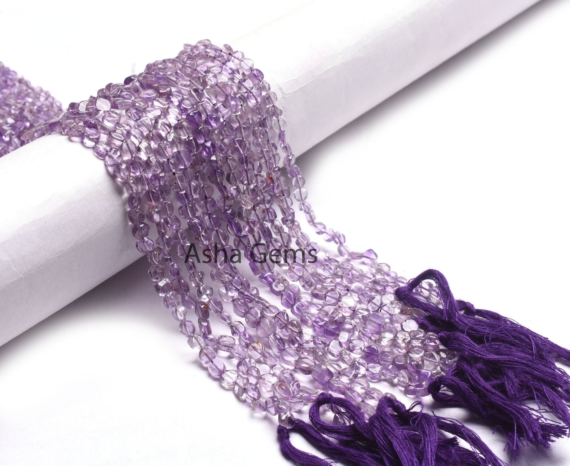 Natural amethyst Smooth Uneven Flat Coin Gemstone Beads,13" Strand Light Purple Amethyst Handmade Coin Straight Drill Beads, Amethyst Bead