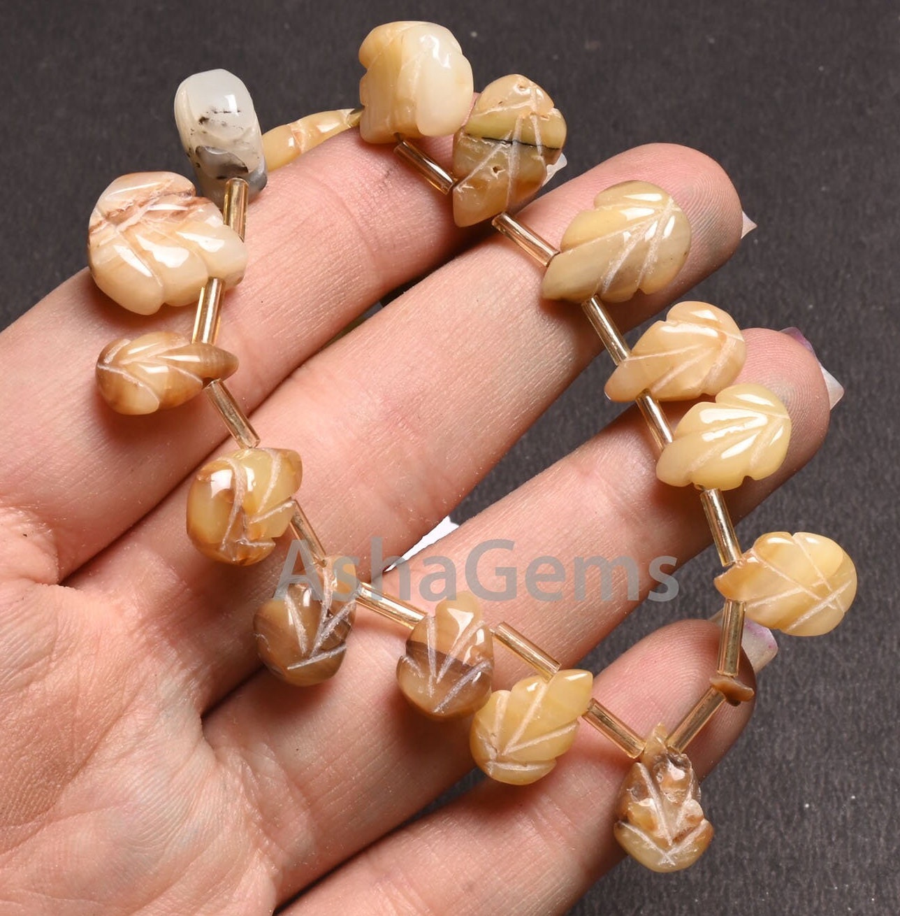 Natural Bio Opal Carving Pears Handmade beads,8" Shaded Yellow Opal carved Pears Uneven shape Carve Gemstone Opal beads Jewelry making Craft