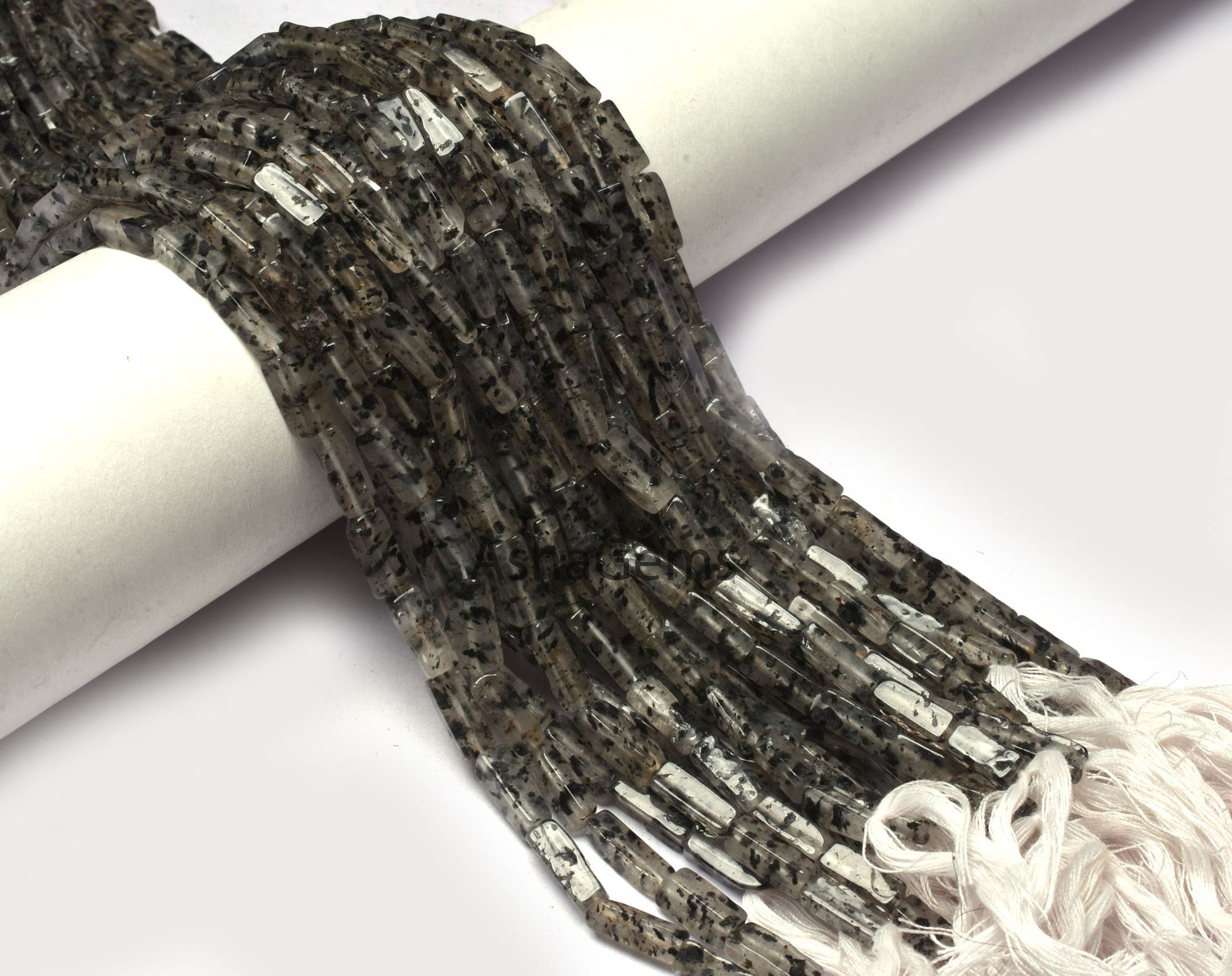 Natural Black Dot Quartz Smooth Rectangle Beads,13" Strand Dot Quartz Plain Handmade Long Rectangle Uneven Beads, Quartz Beads Jewelry SALE
