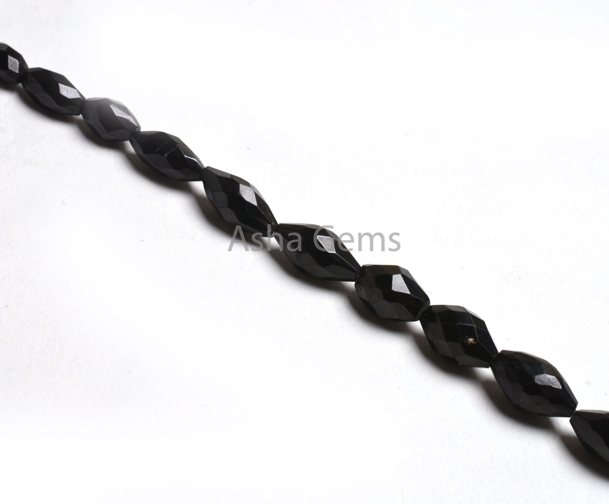 Natural Black Spinal Faceted Barrell Shape Beads,8" Spinal Fancy Loi Shape Gemstone Straight Drill Beads Fine Black Spinal Bead Jewelry SALE