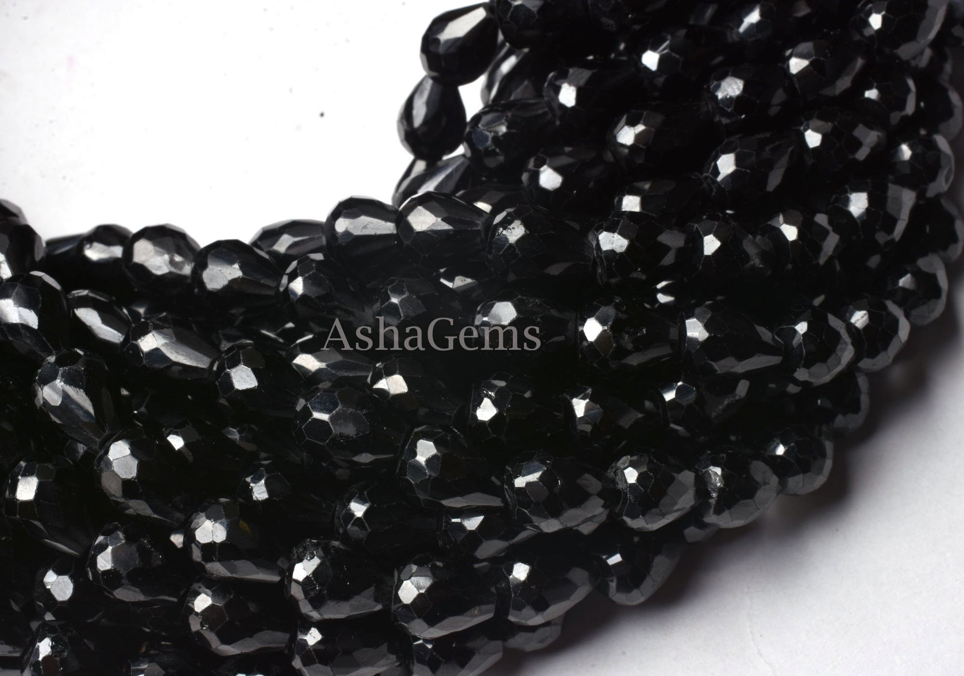 Natural Black Spinel Faceted Drops Shape Beads,5x7 mm Black spinel Faceted Drops Beads,13 Inch Fine Quality Spinel Briolette Gemstone Beads