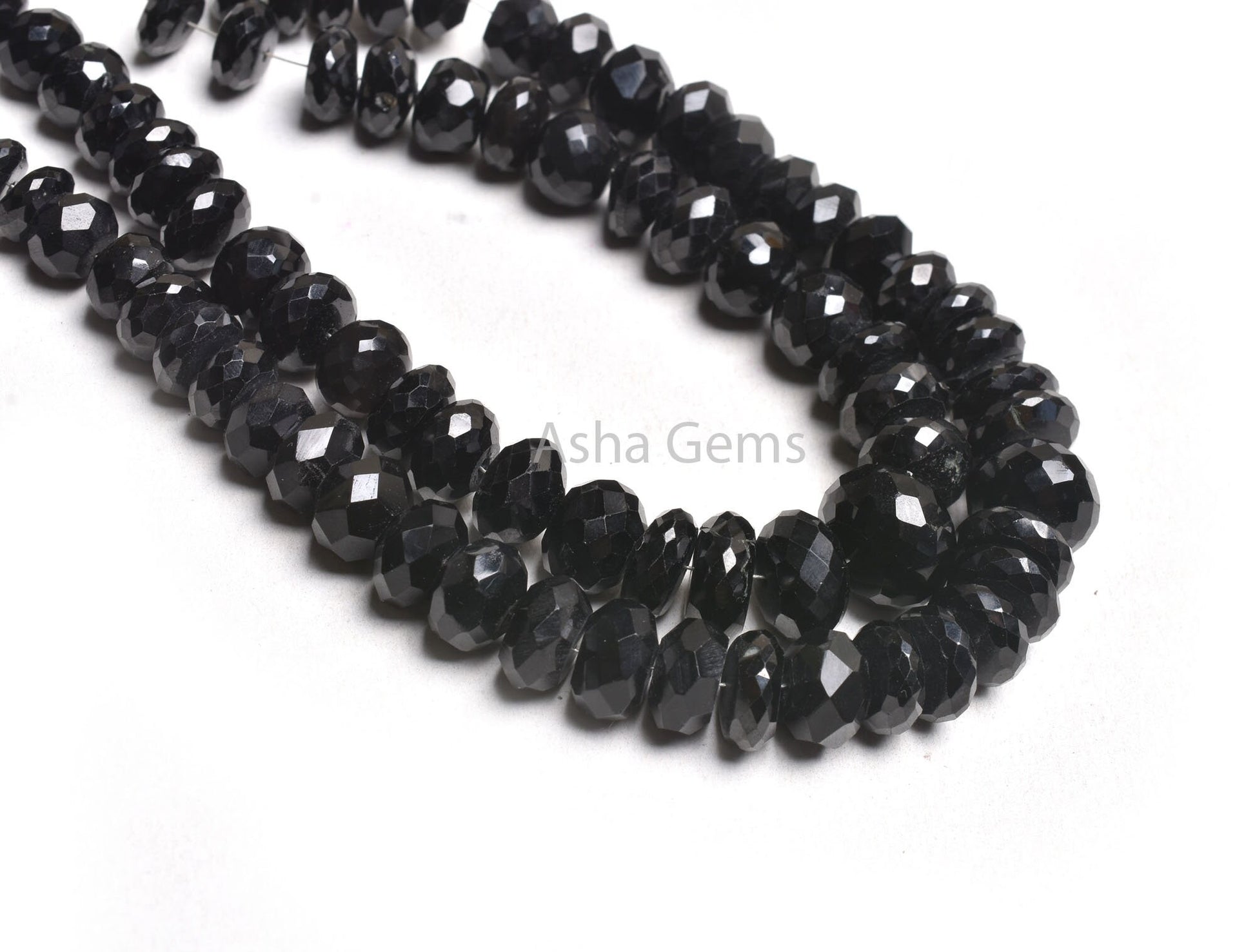 Natural Black Spinel Faceted Gemstone Beads,11"Strand Graduated Size spinel Indian Machine Cut faceted Rondelle Beads Fine Black Spinel Bead