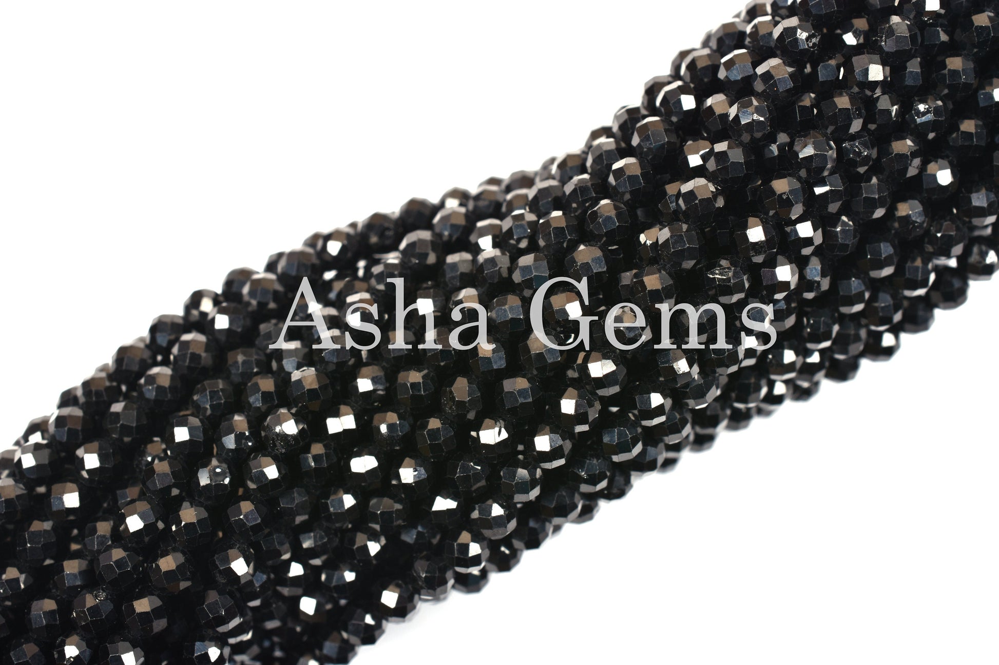 Natural Black Spinel Faceted Roundelle Beads,2, 2.4mm Spinel Micro Cut Beads, AAA Black spinal Gemstone Beads Jewelry Makings Craft Necklace