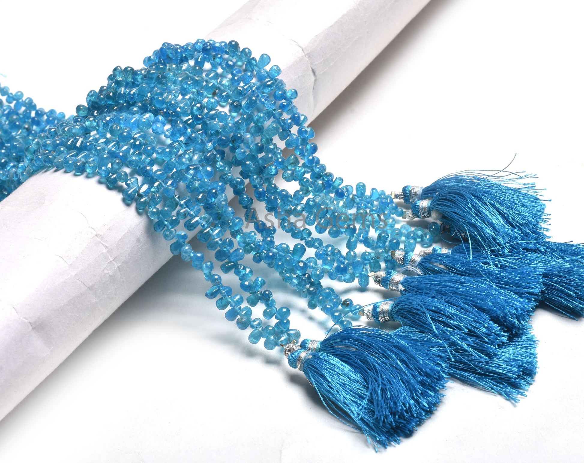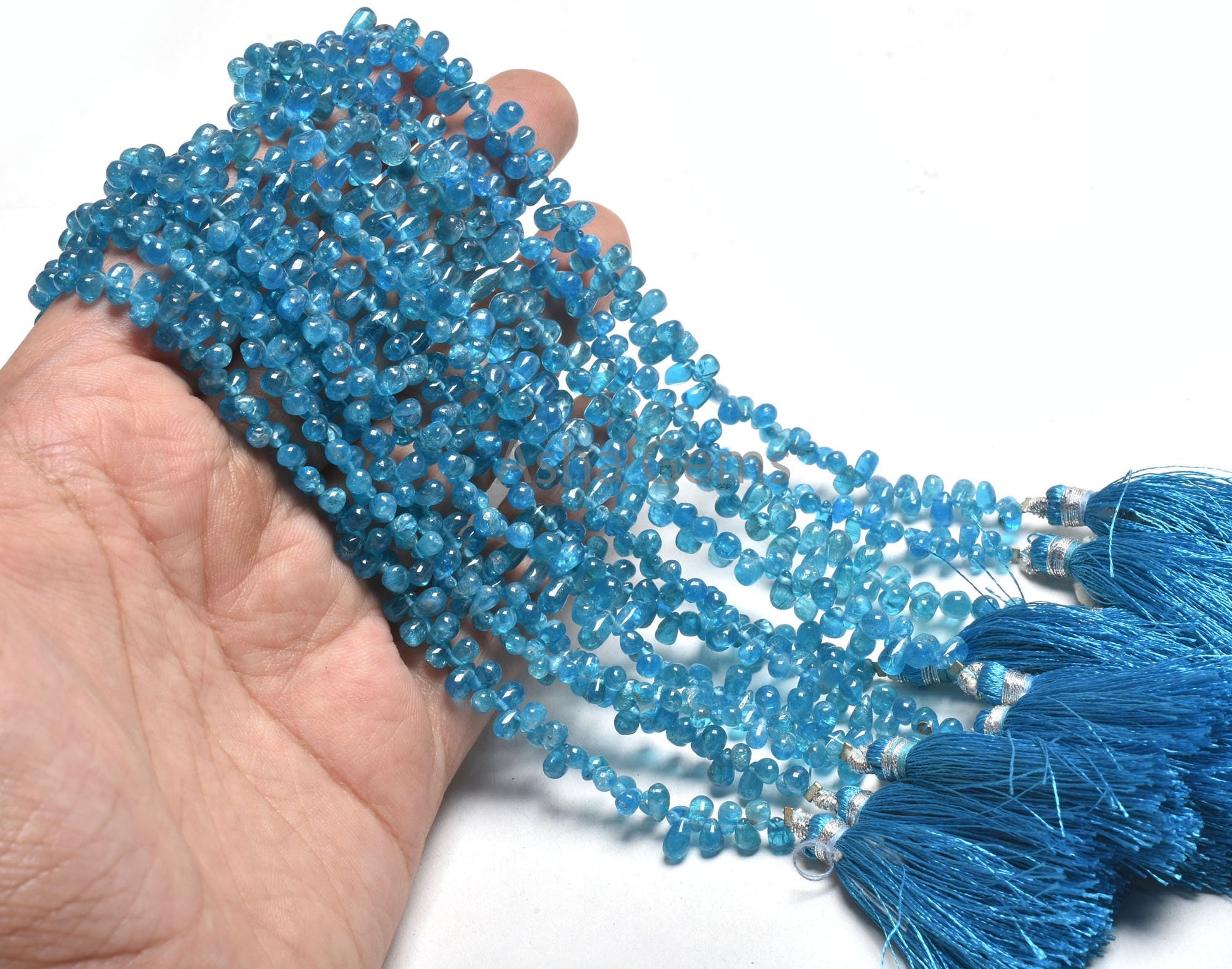 Natural Blue Apatite Smooth Drop Gemstone Side Drill Beads, Neon Apatite Plain Handmade Tiny Teardrop Handmade Gemstone Beads Jewelry Crafts