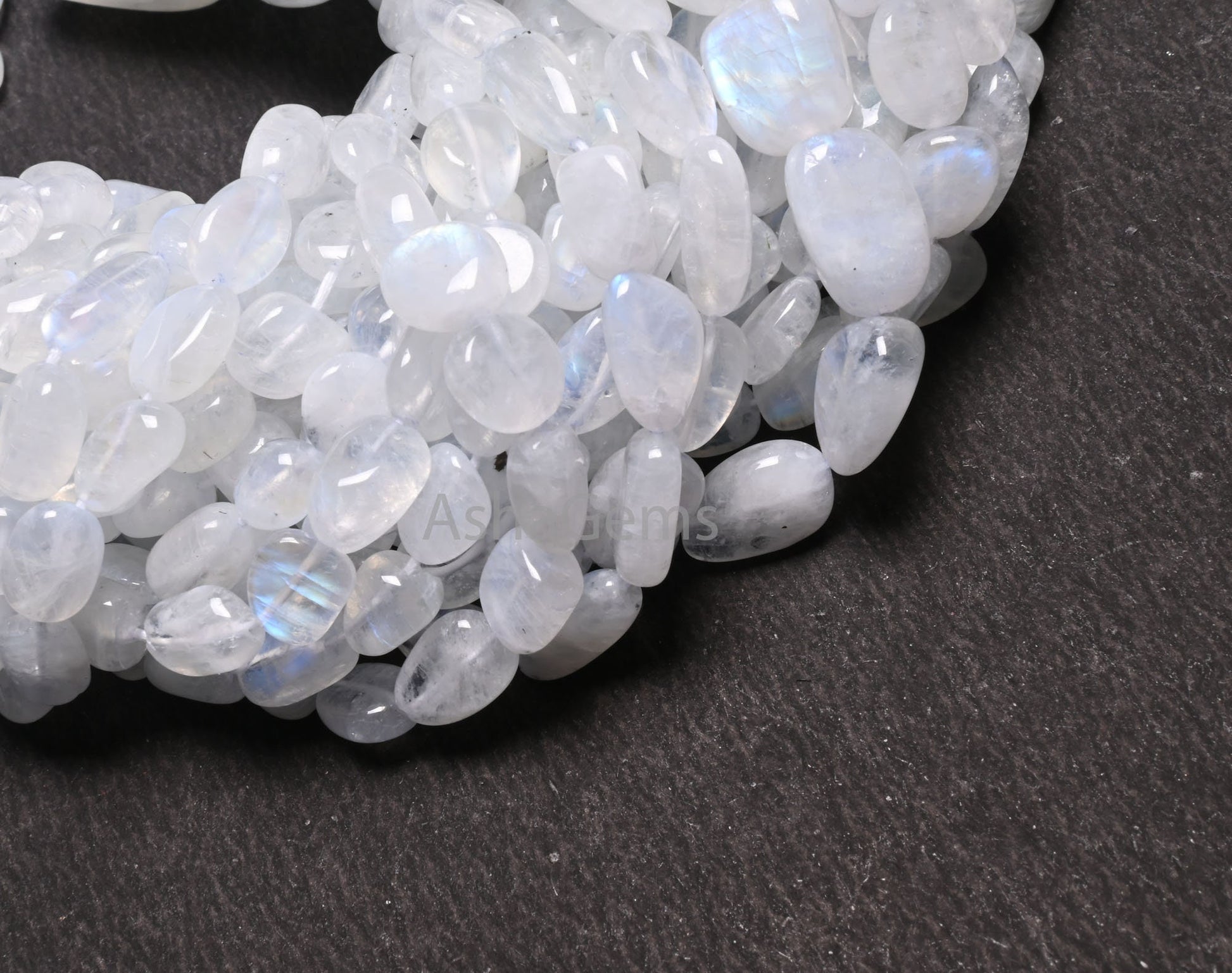 Natural Blue Fire Rainbow Moonstone Smooth Nugget Gemstone Loose Beads,9/18"Strand Fine White Rainbow Handmade Tumble Beads Necklace Jewelry (AG 22299)