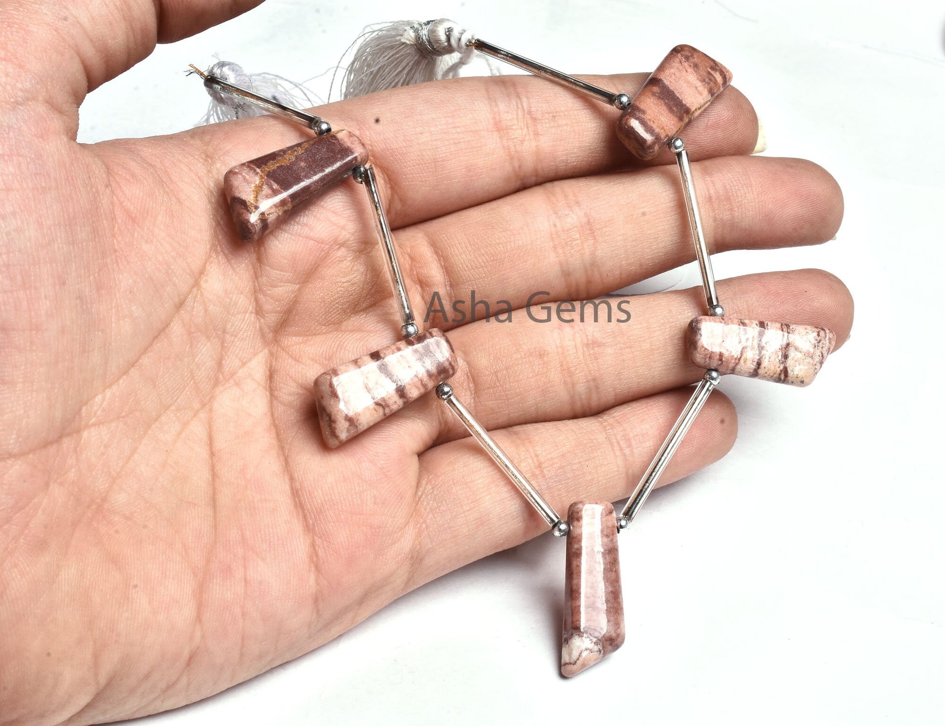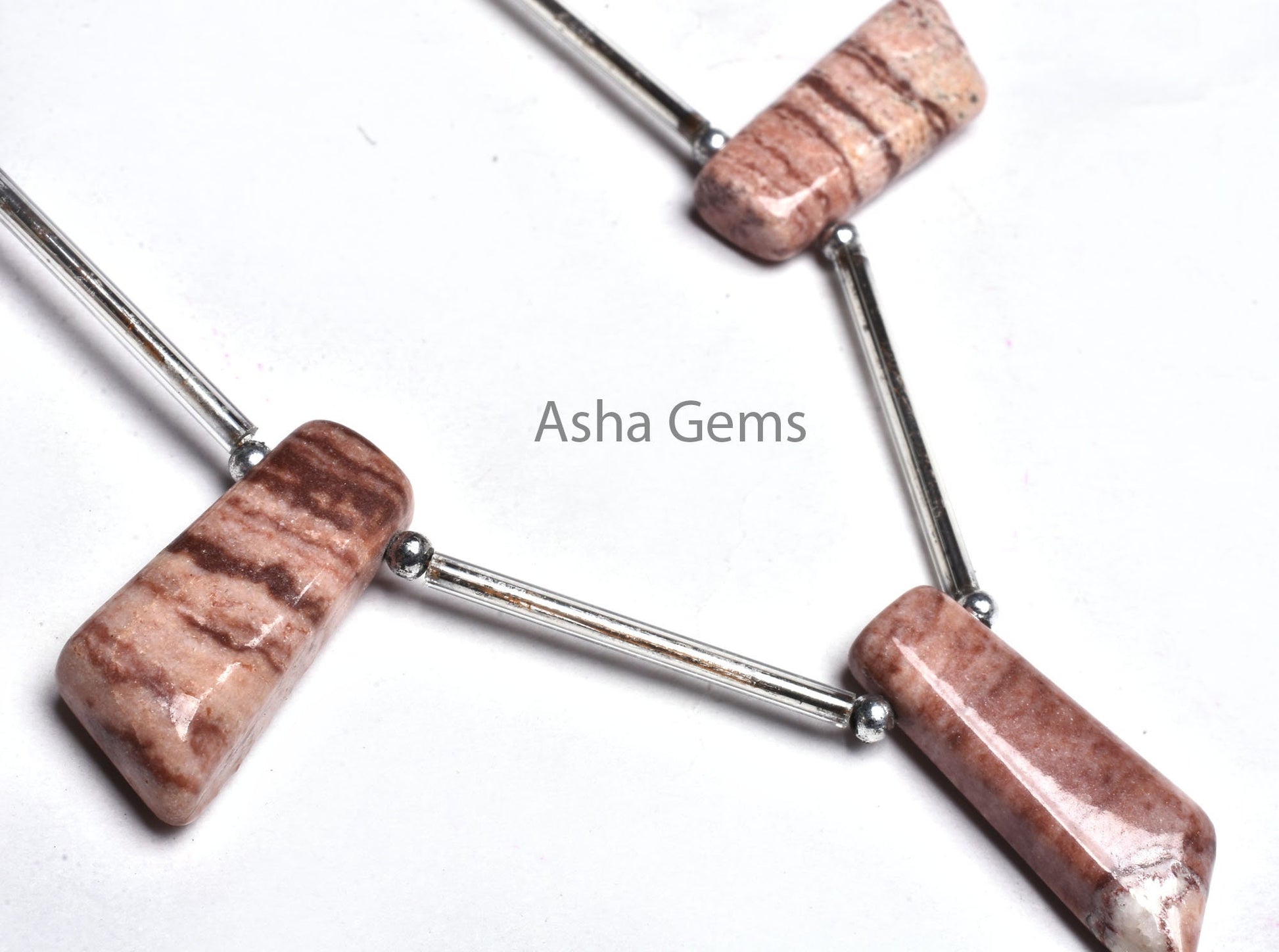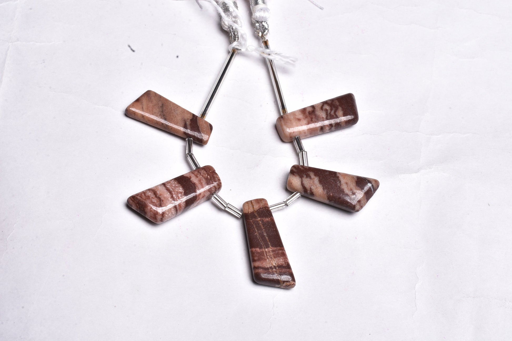 Natural Brown Jasper Fancy 7 Shape Uneven Smooth Beads, Picture Jasper Smooth Handmade Side Drill Fancy Long Slice Gemstone Beads Handicraft