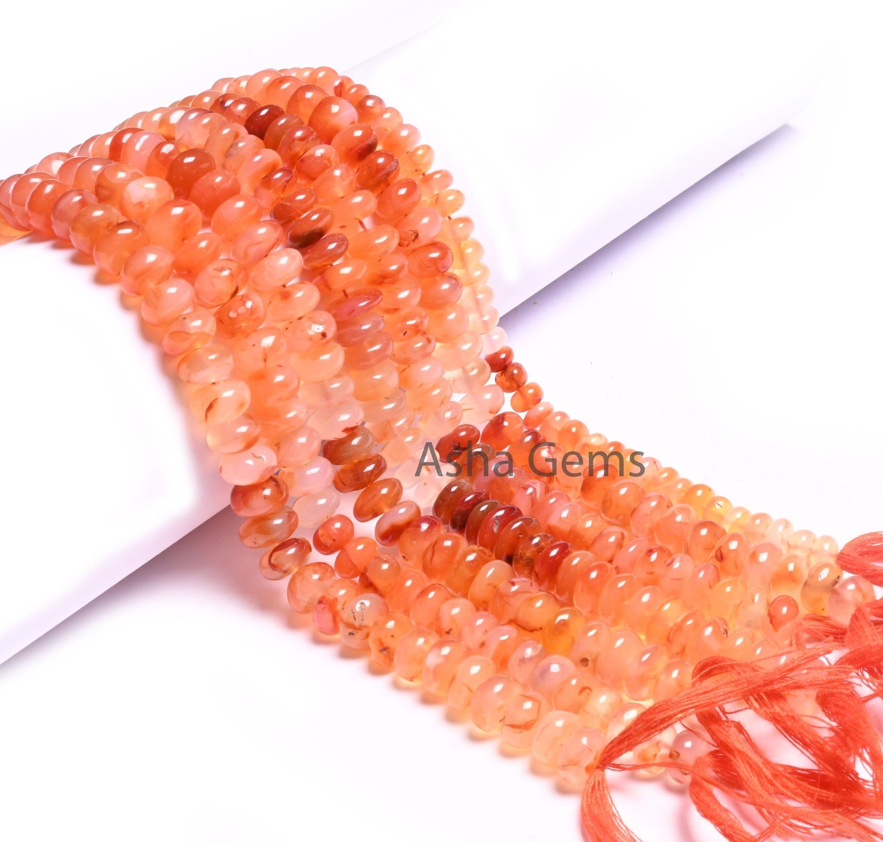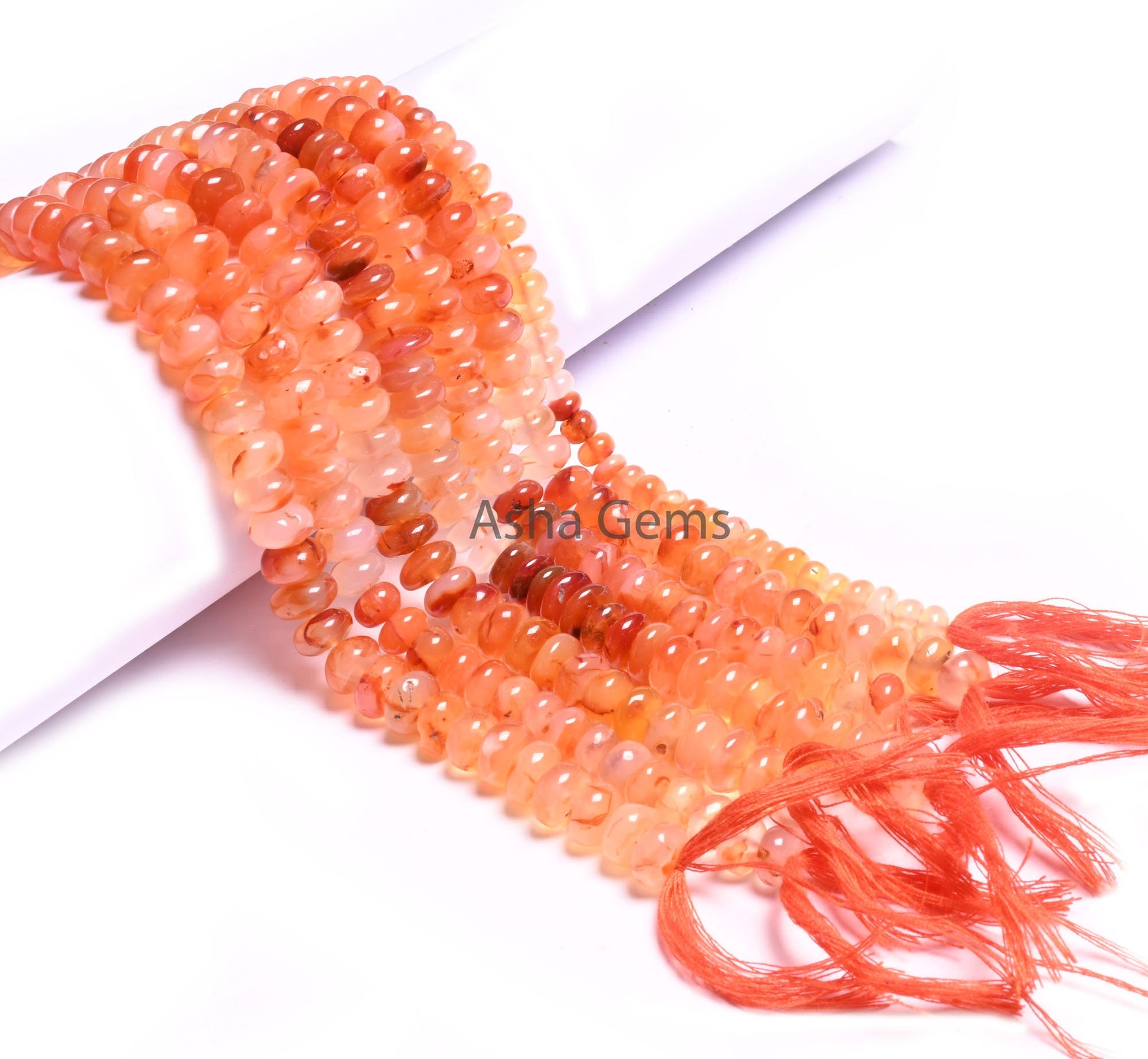 Natural Carnelian Smooth Rondelle Shape Beads,10" Shaded Red Orange Carnelian Plain Handmade Gemstone Loose Bead Carnelian Bead Jewelry SALE