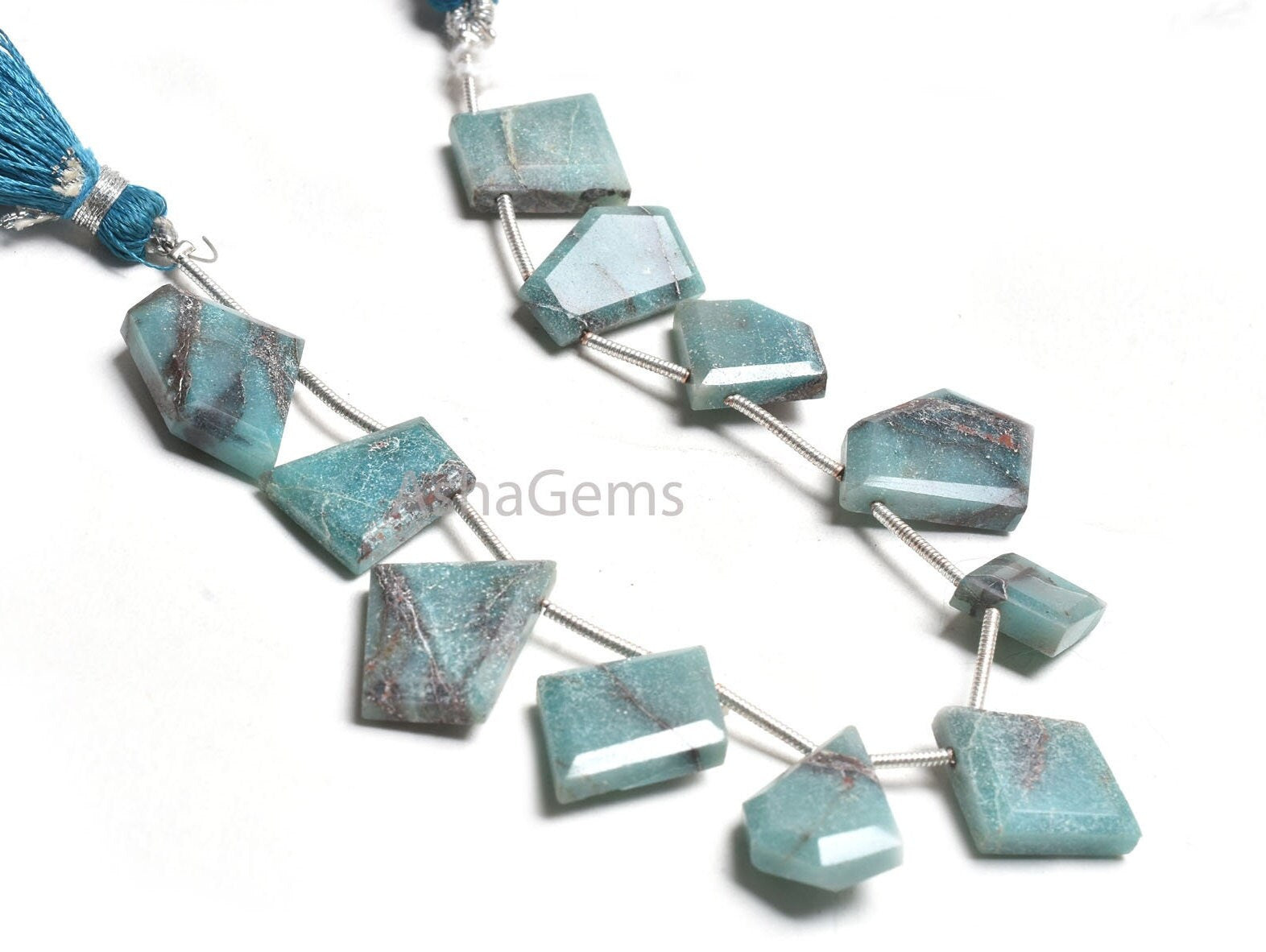 Natural Chrysocolla Fancy Uneven Flat Slice Shape Faceted Beads,10-16mm Blue Chrysocolla Beads Table Cut Side Drill Bead Jewelry Crafts SALE