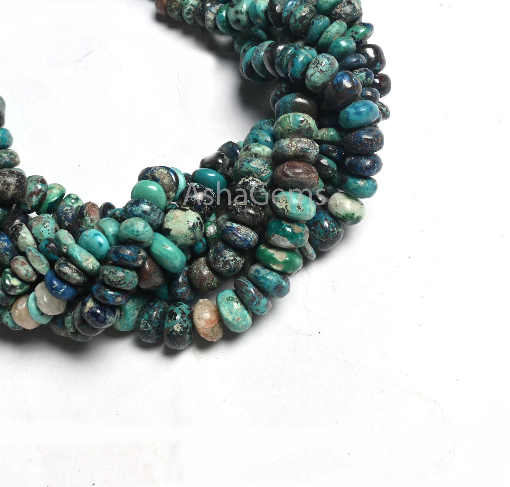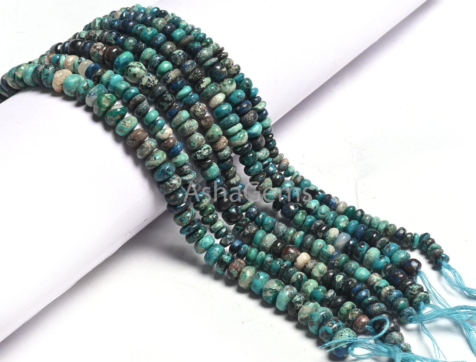 Natural Chrysocolla Smooth Rondelle Shape Gemstone Loose Beads,9" Blue chrysocolla Plain Handmade beads, Chrysocolla Bead Jewelry Craft SALE