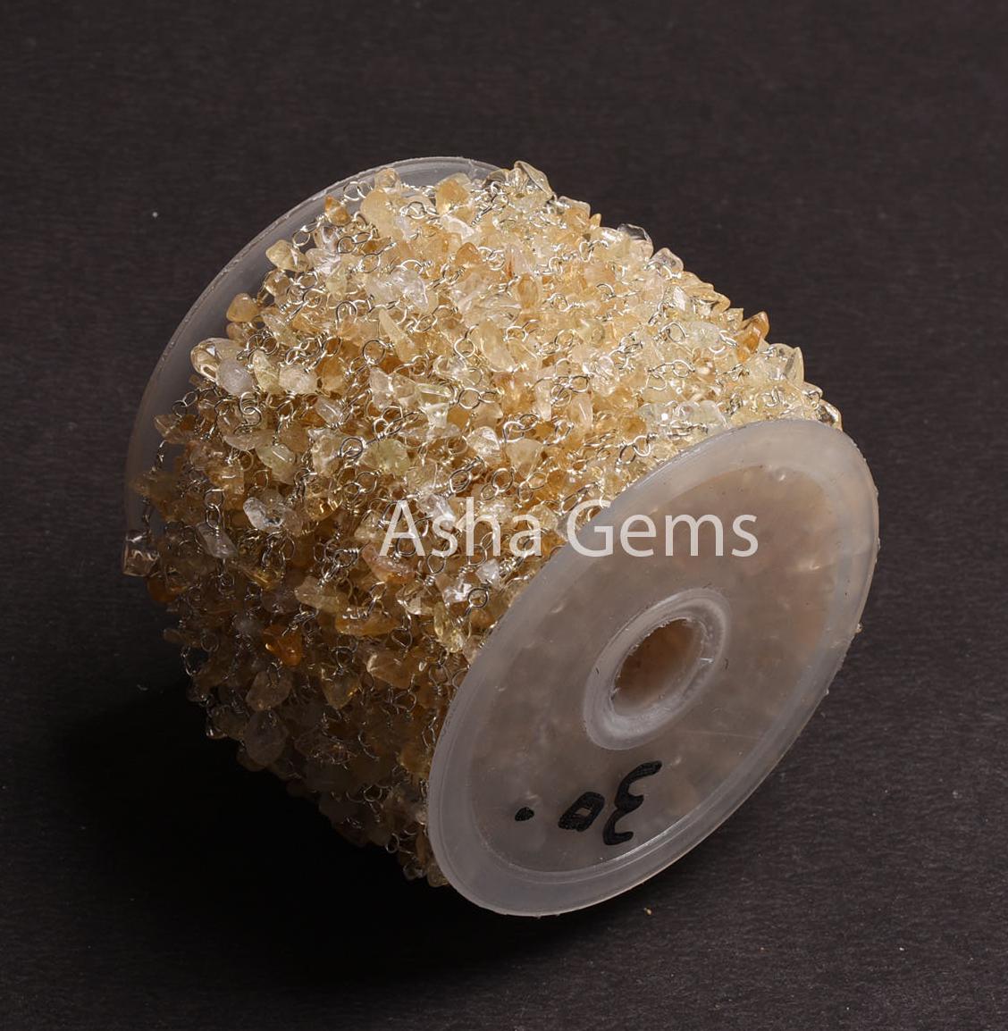 Natural Citrine Quartz Uncut Chip Beads Rosary Chain Silver Plated Wire Wrap Beaded handmade Chains,Gemstone Nugget Chain Jewelry Craft SALE