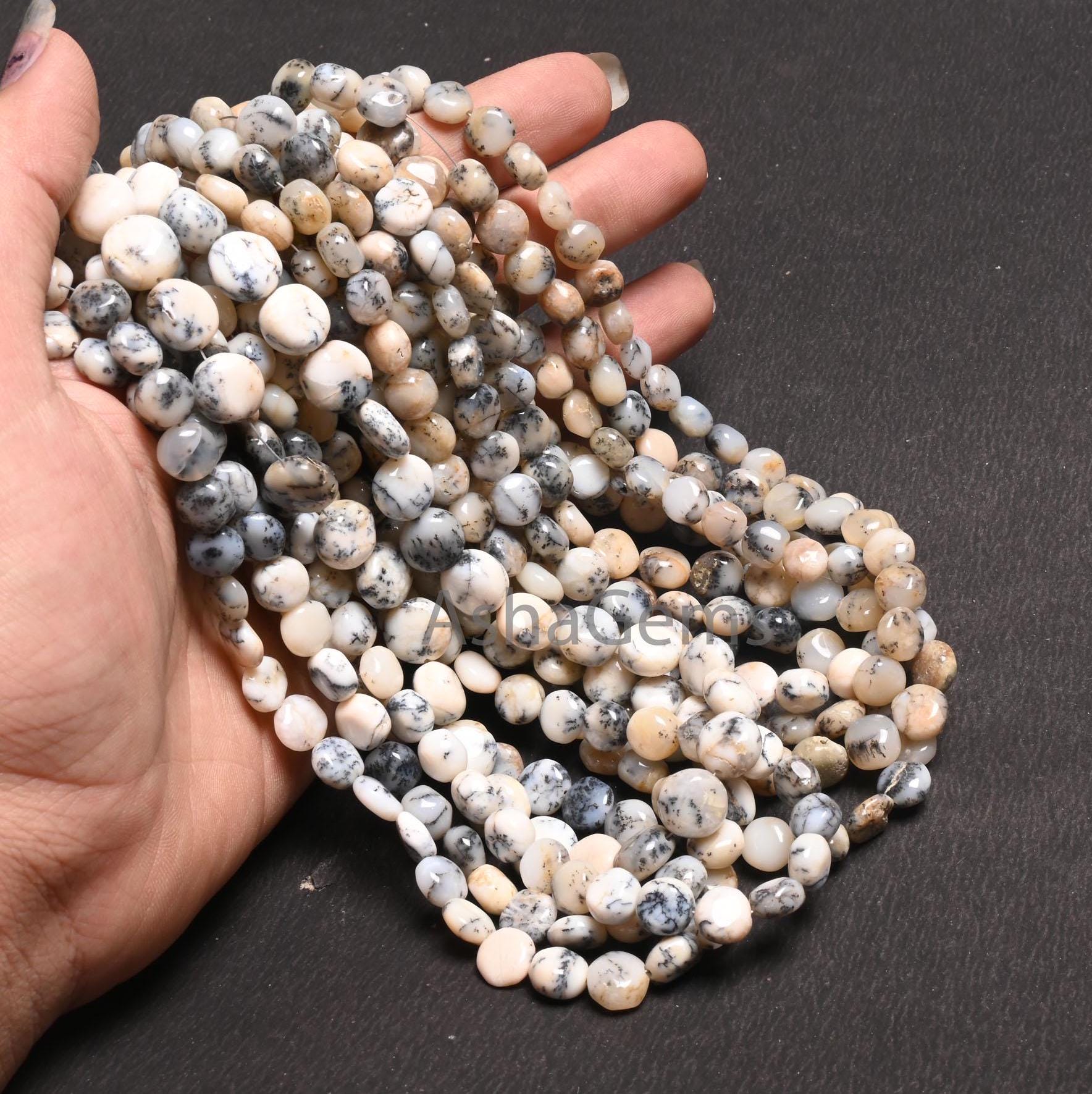 Natural Dendrite Opal Smooth Coin Shape handmade Beads,14" Fine Dendritic Opal Plain Coin Gemstone Straight Drill Opal Beads Jewelry Crafts