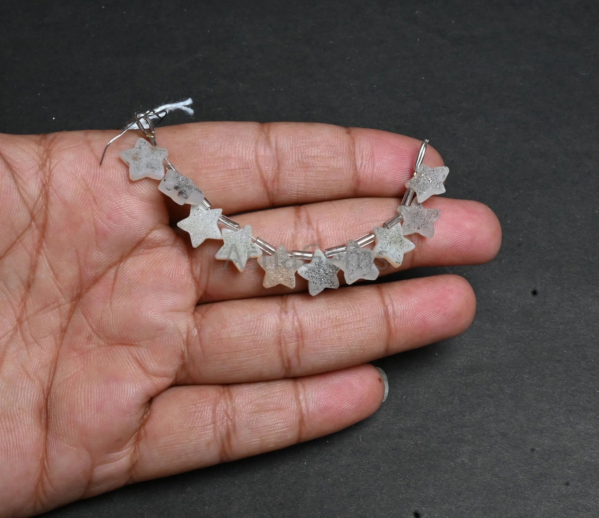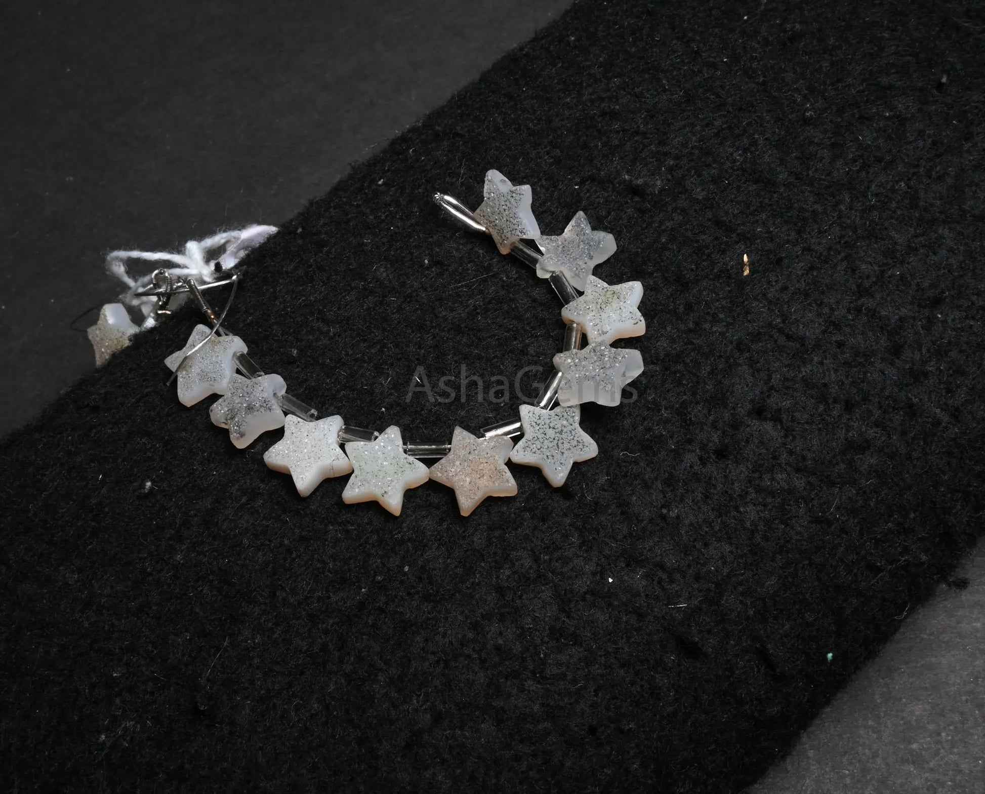 Natural Drusy fancy Star Shape Carving Gemstone Beads, Beautiful White Agate Druzy Carved Star Side Drill Bead For Jewelry Making Craft SALE(AG 18859)