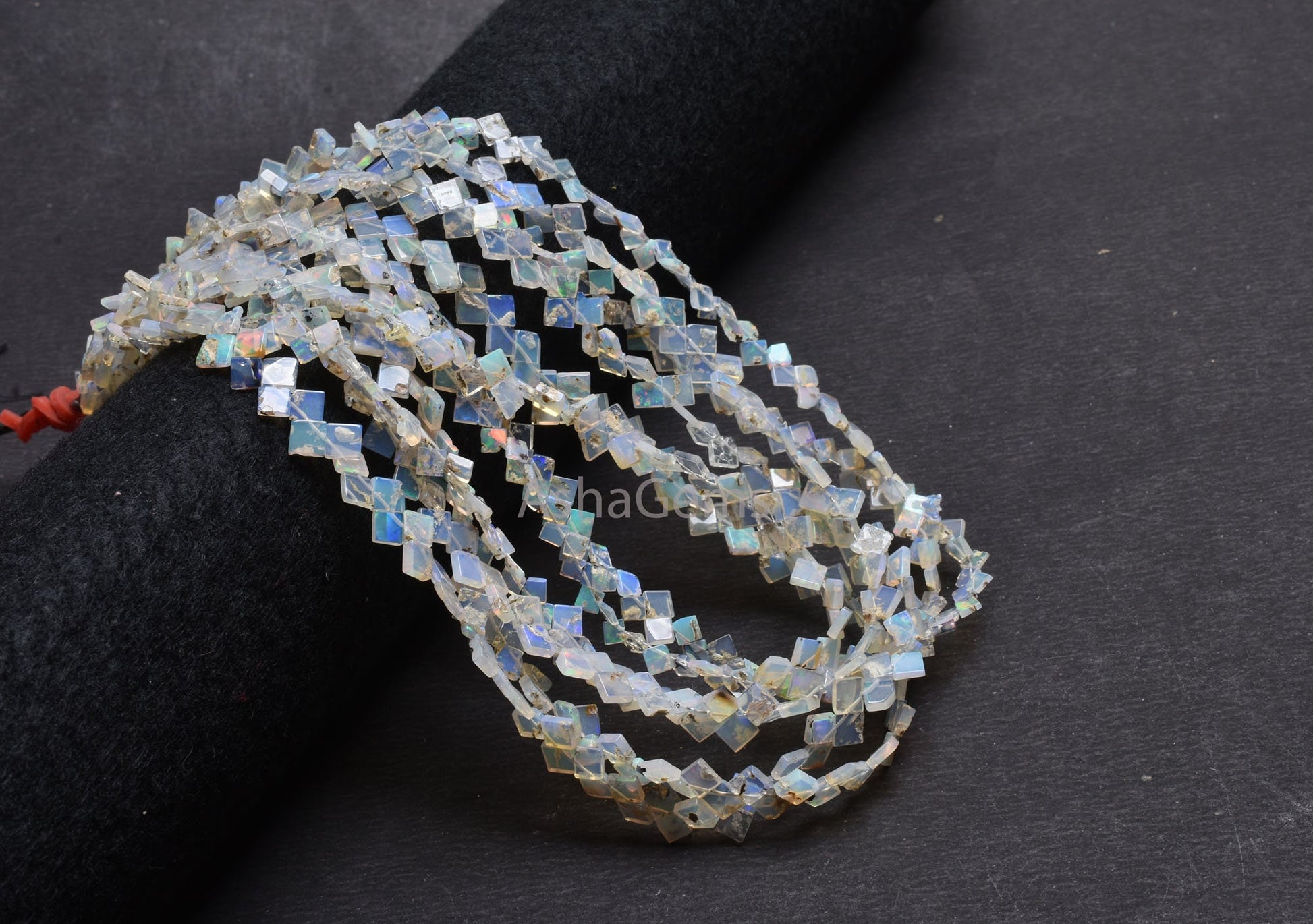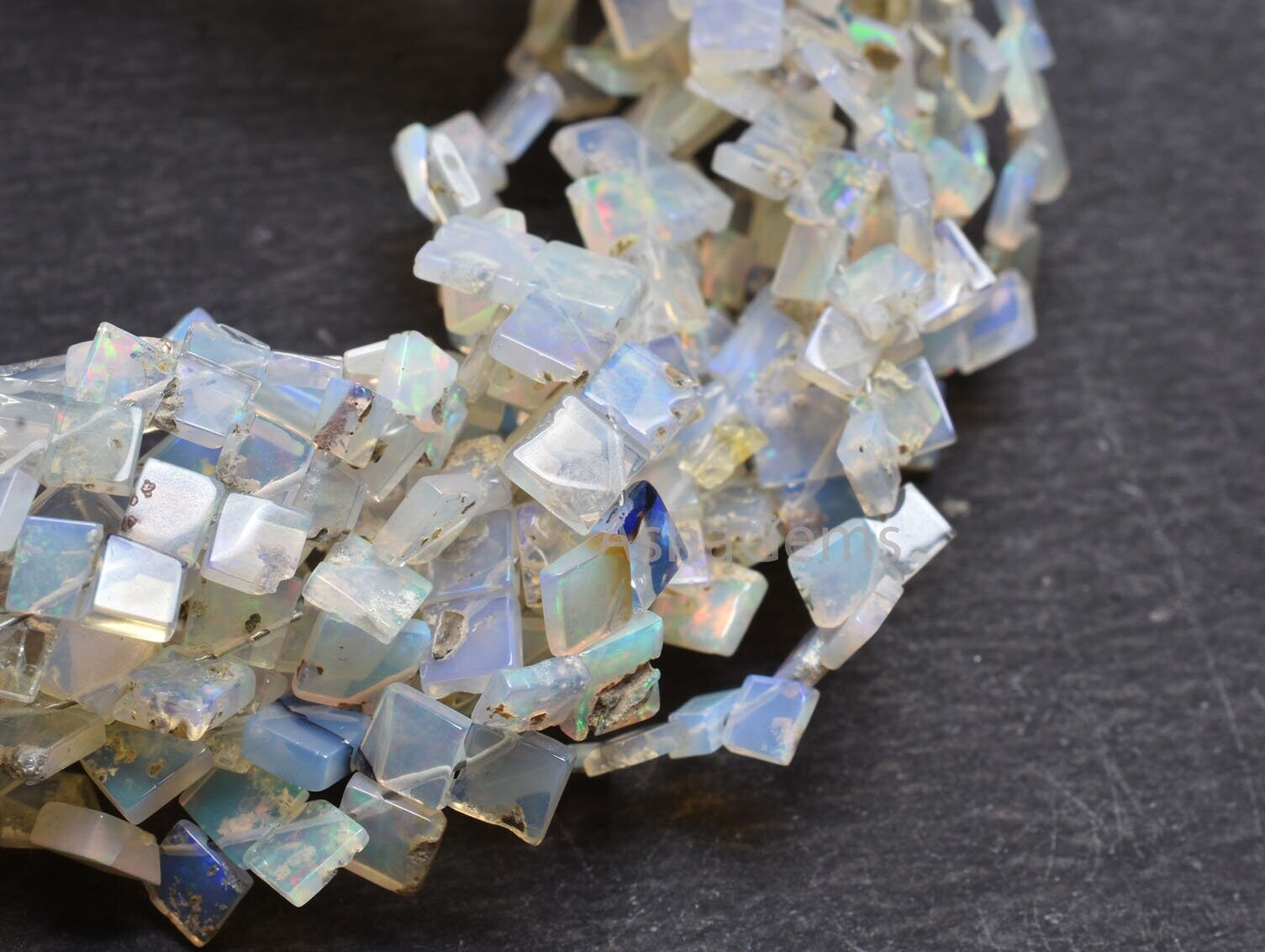 Natural Ethiopian Opal Smooth Uneven Square Shape Beads,Flashy Welo Fire White Ethiopian Opal Fancy Kite Gemstone Handmade Bead Jewelry SALE