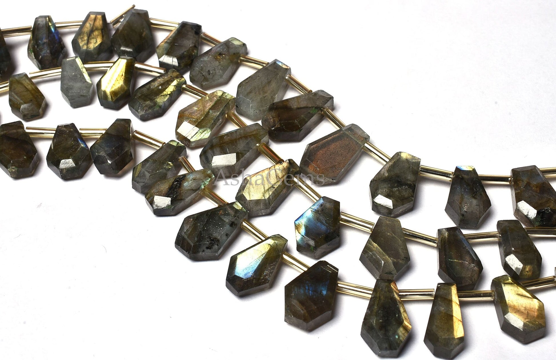 Natural Flash Labradorite Faceted Coffin Shape Beads, Labradorite Fancy Softy Bead,7" Strand Black Rainbow Side Drill Bead For Jewelry Craft