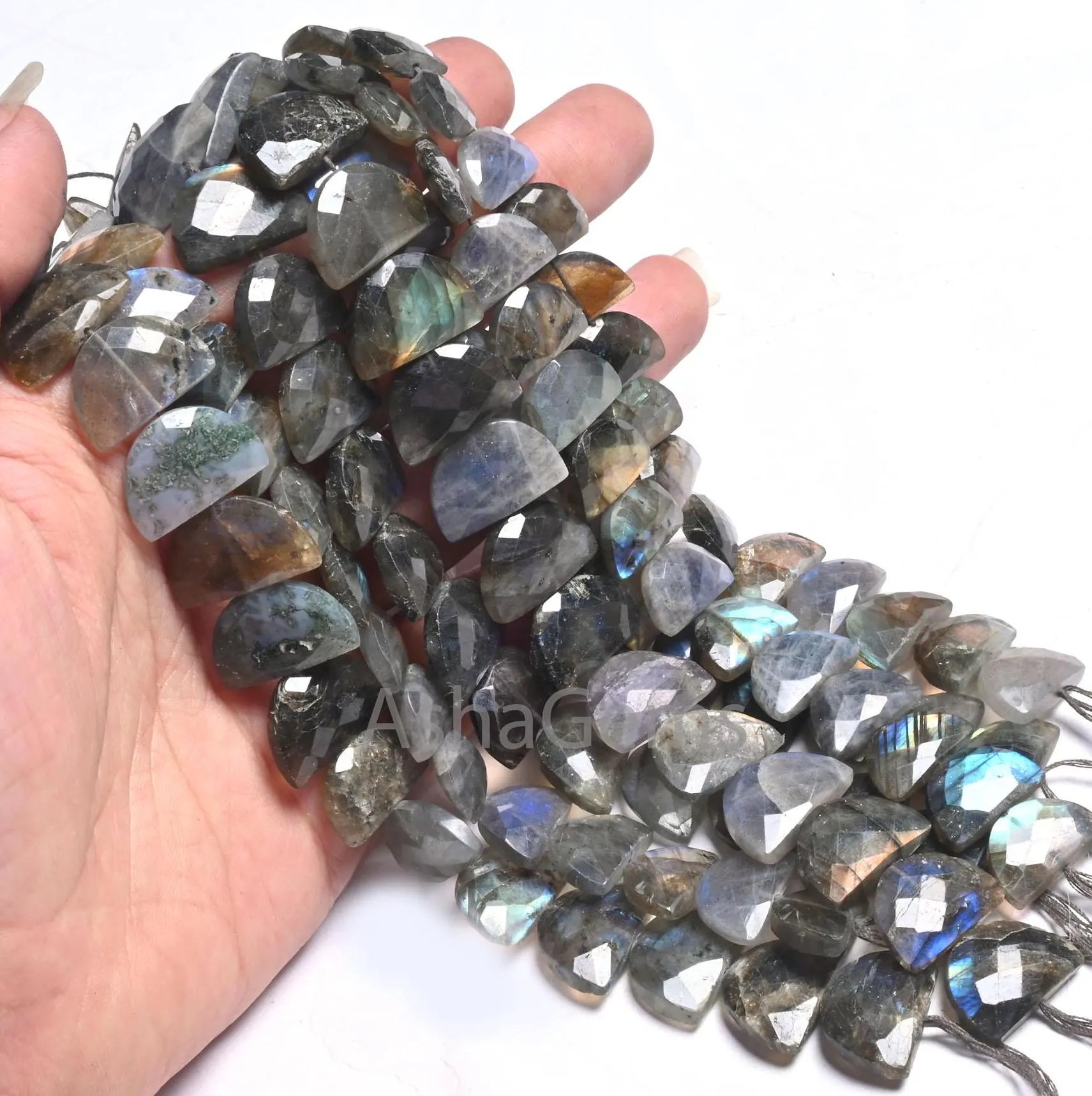 Natural Flash Labradorite Fancy D Shape Faceted Gemstone Beads,8" Strand Black rainbow half Moon Briolette T Drill labradorite Beads Jewelry