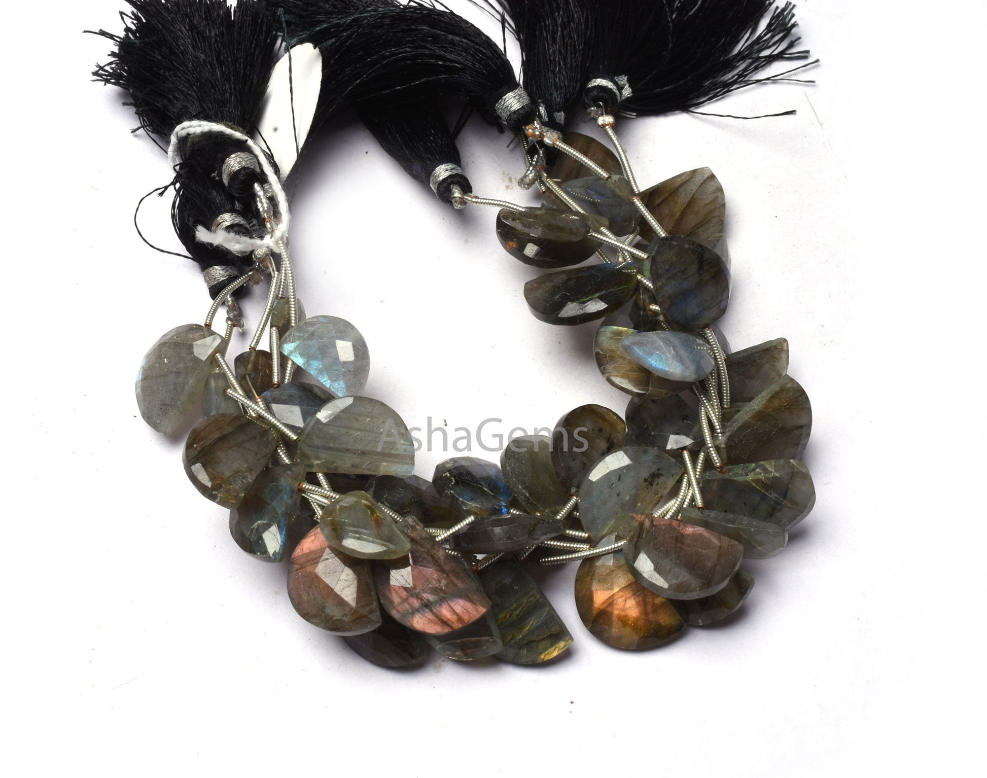 Natural Flash Labradorite Fancy D Shape Gemstone Beads Black rainbow Faceted Briolette beads, Labradorite Side Drill Beads For Jewelry Craft