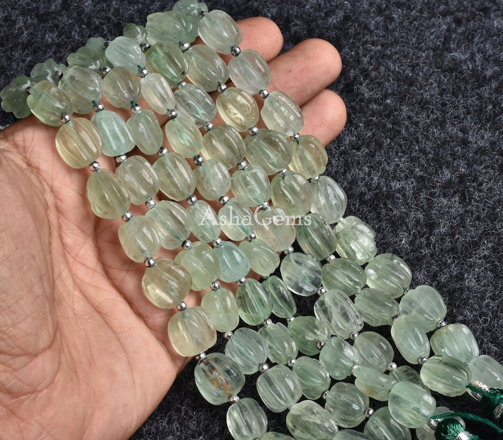 Natural Fluorite Carved Gemstone Beads,8" Strand Green Fluorite Fancy Carving Nugget Beads, Fluorite Carve Bead Handmade Puff Oval Beads