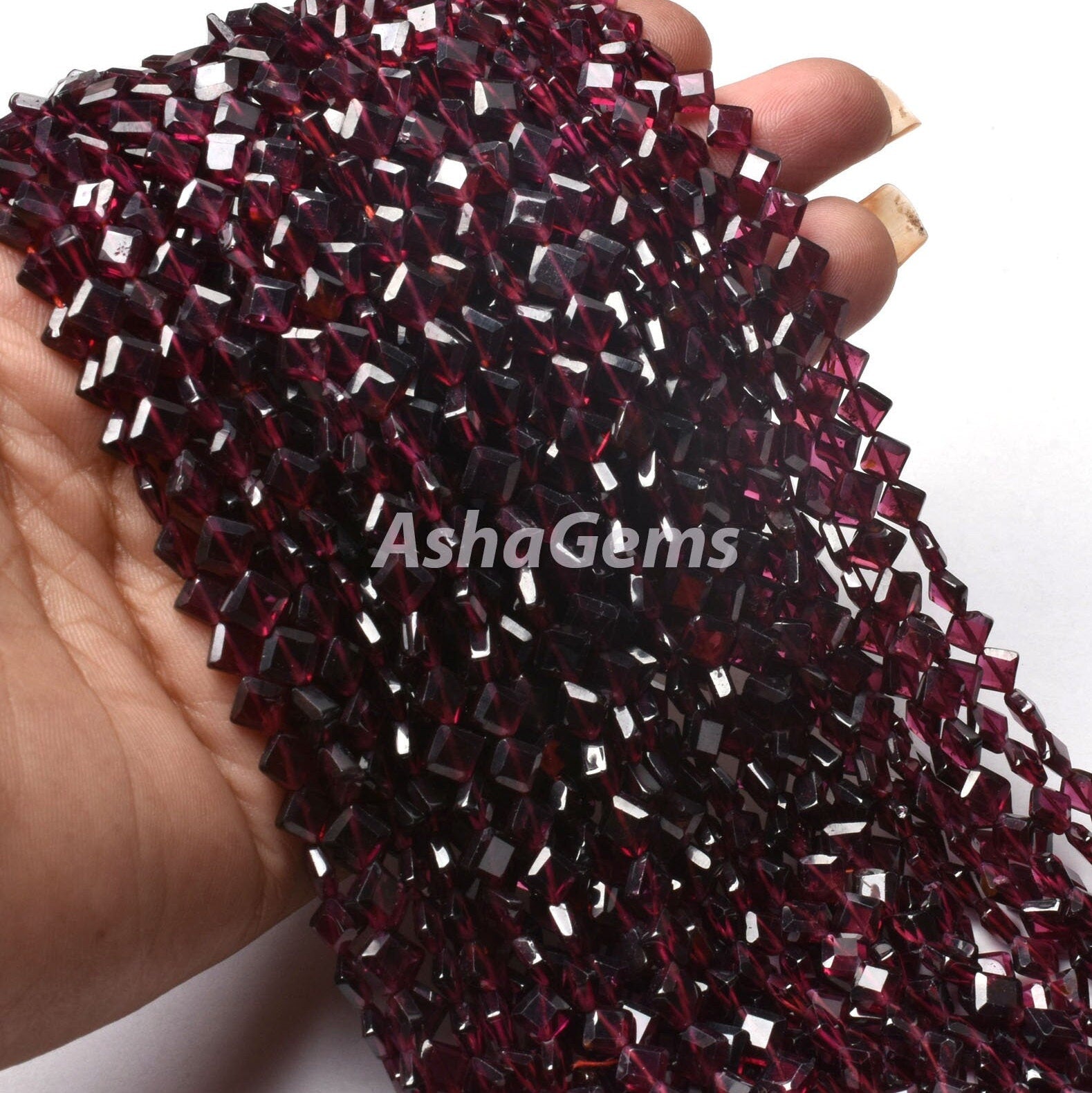 Natural Garnet Faceted Fancy Shape Beads, Red Garnet Flat Square Fancy Drill Gemstone Beads,12 Inch Garnet Beads For Jewelry Making Craft