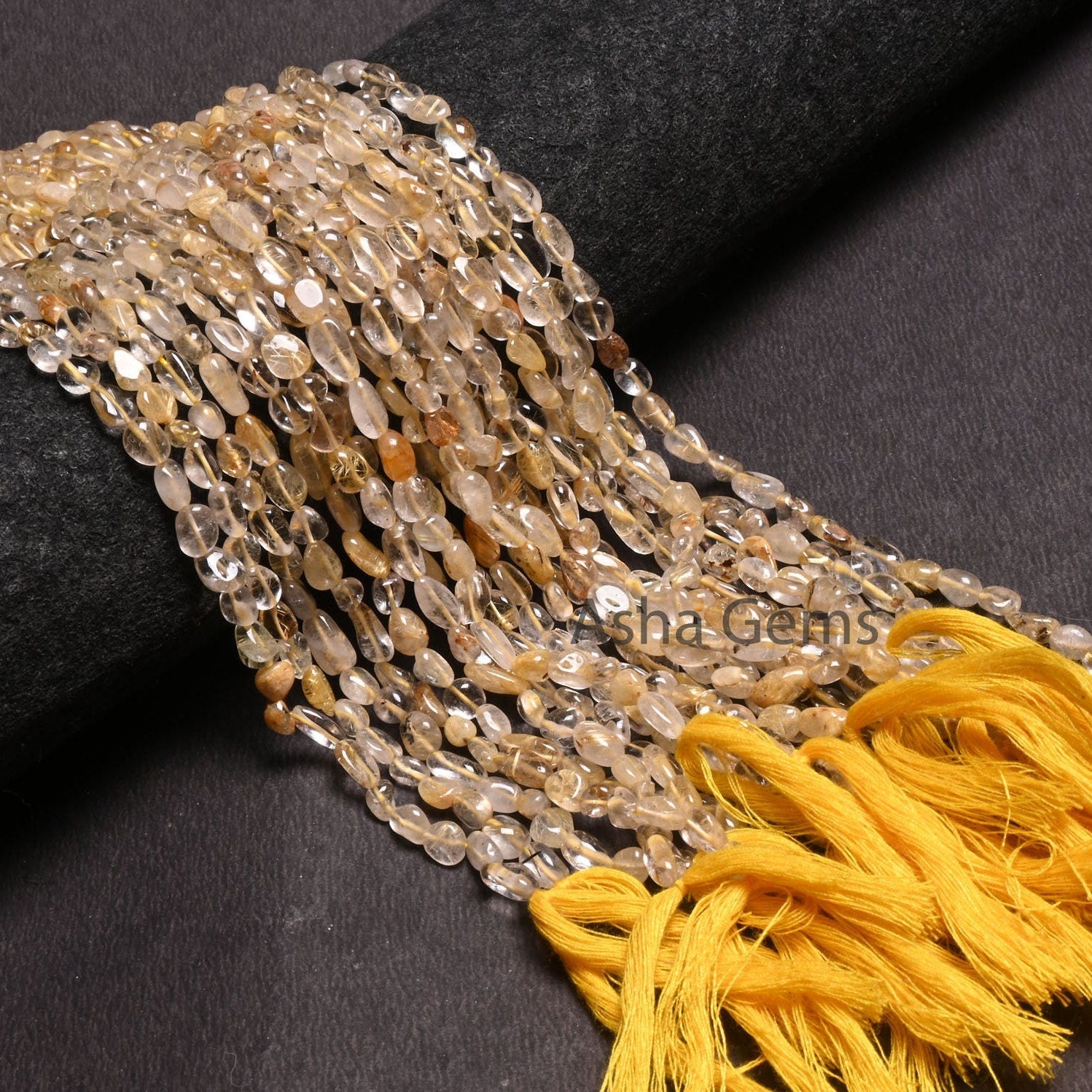 Natural Golden Rutile Smooth Tiny Nugget Gemstone Loose Beads, Beautiful Golden Rutile Plain Handmade Nugget Shape Rutile Bead Jewelry Craft (AG 22275)