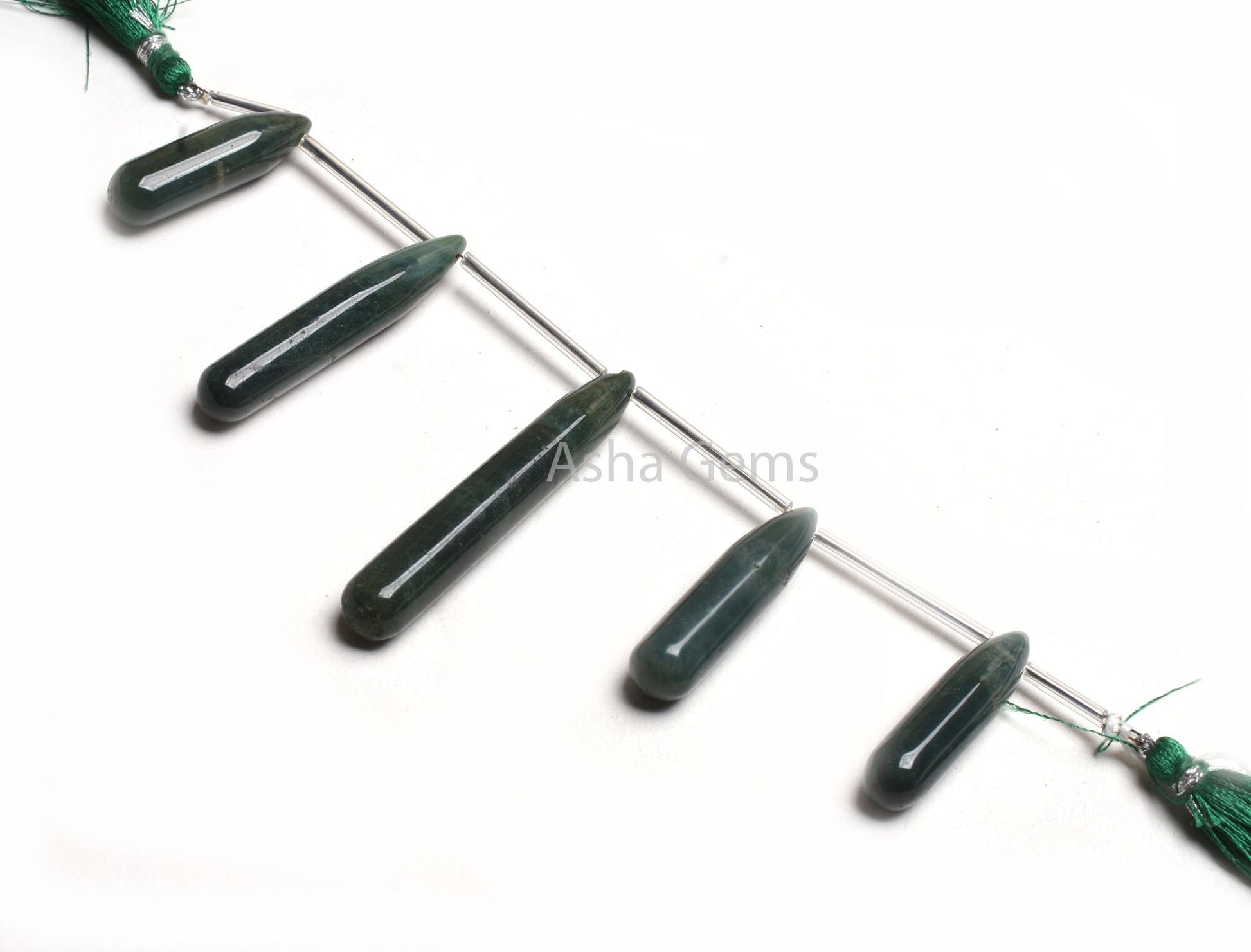 Natural Green Agate Fancy Pencil Shape Long Drop Beads,8.5x31-9x55mm Agate Side Drill Teardrop Briolette Gemstone Agate Bead Handicraft SALE