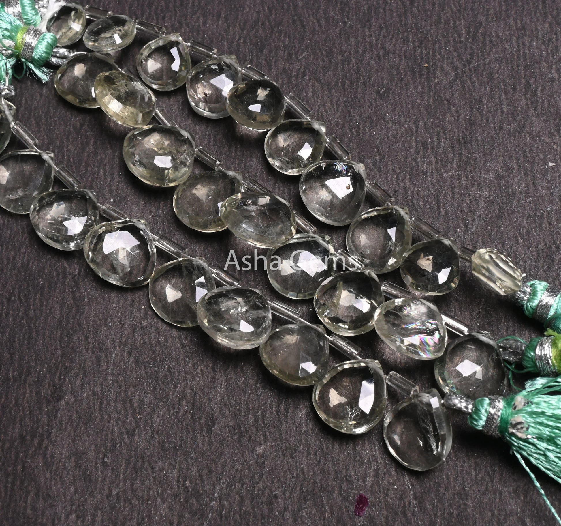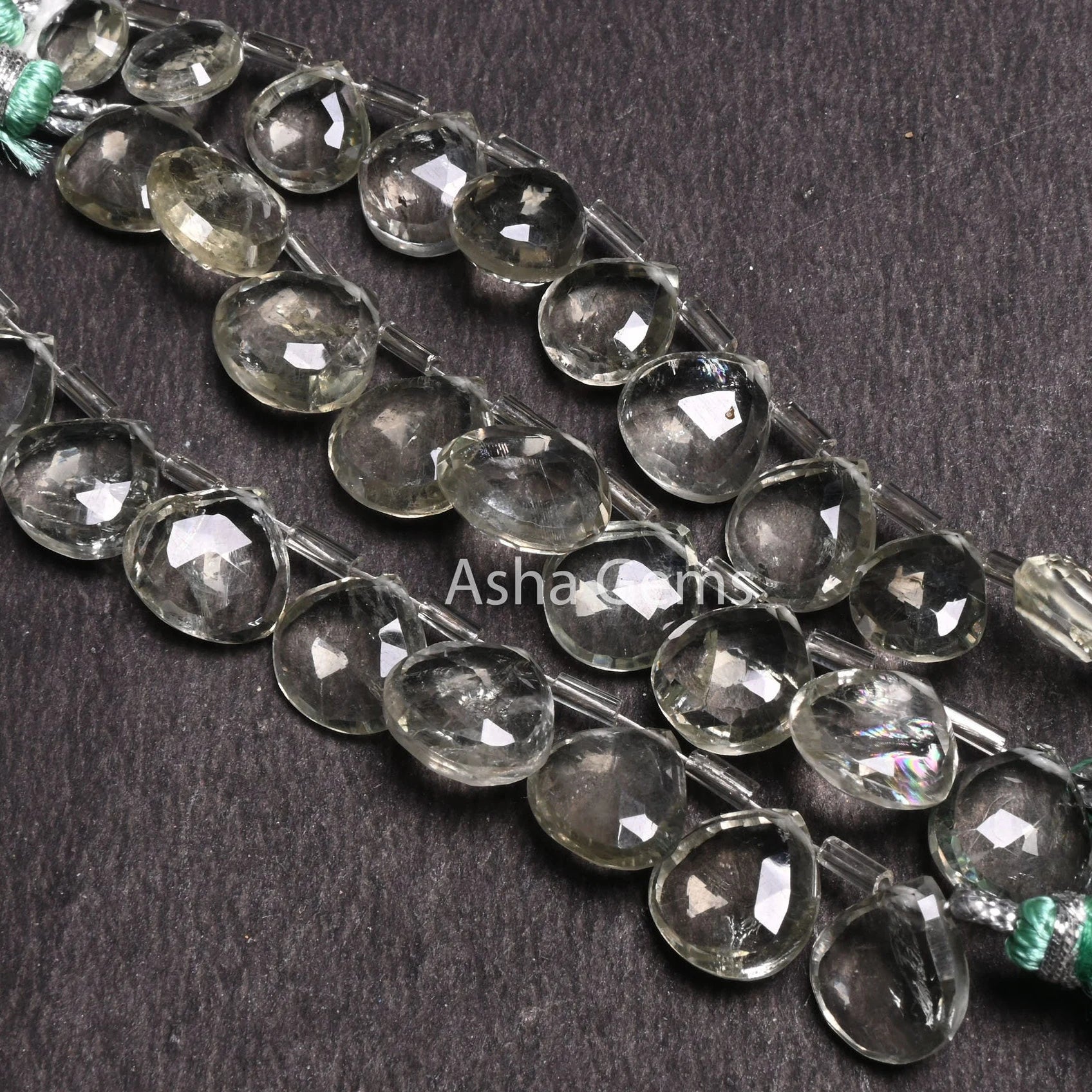 Natural green Amethyst Faceted Heart Shape Gemstone beads, AAA Quality Green Amethyst Heart Briolette Side Drill beads, Jewelry Making Craft(AG 18569)
