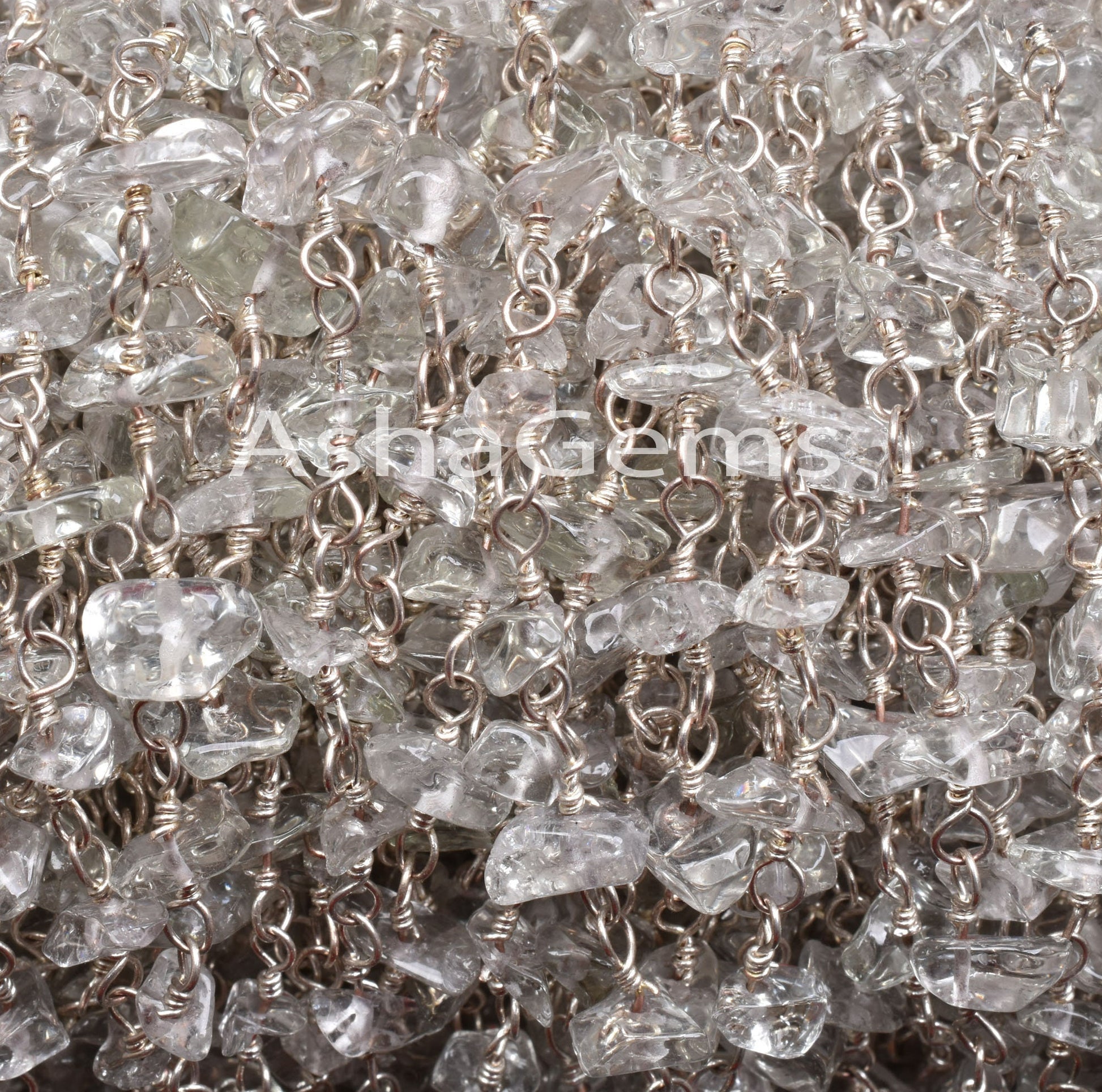 Natural Green amethyst Uncut Chip Beads Rosary Chain Silver Plated Wire Wrap Amethyst Tiny Nugget Beaded Handmade Chain Jewelry Making Craft