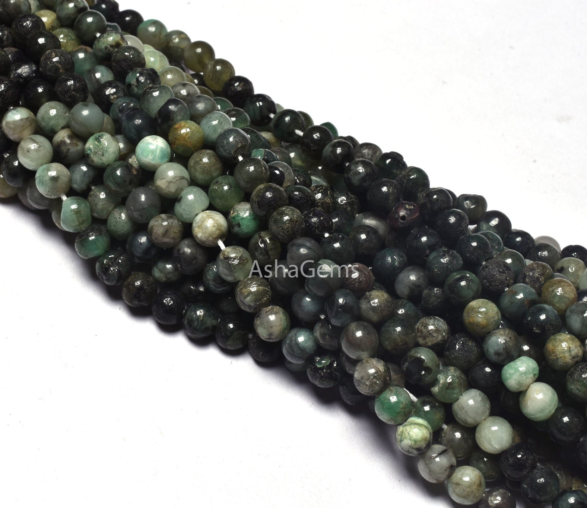 Natural Green Emerald Smooth Shadded Round Shape Beads,4-5mm Emerald Plain Round Loose Beads,13" Full Strand Emerald Smooth Beads,Craft SALE