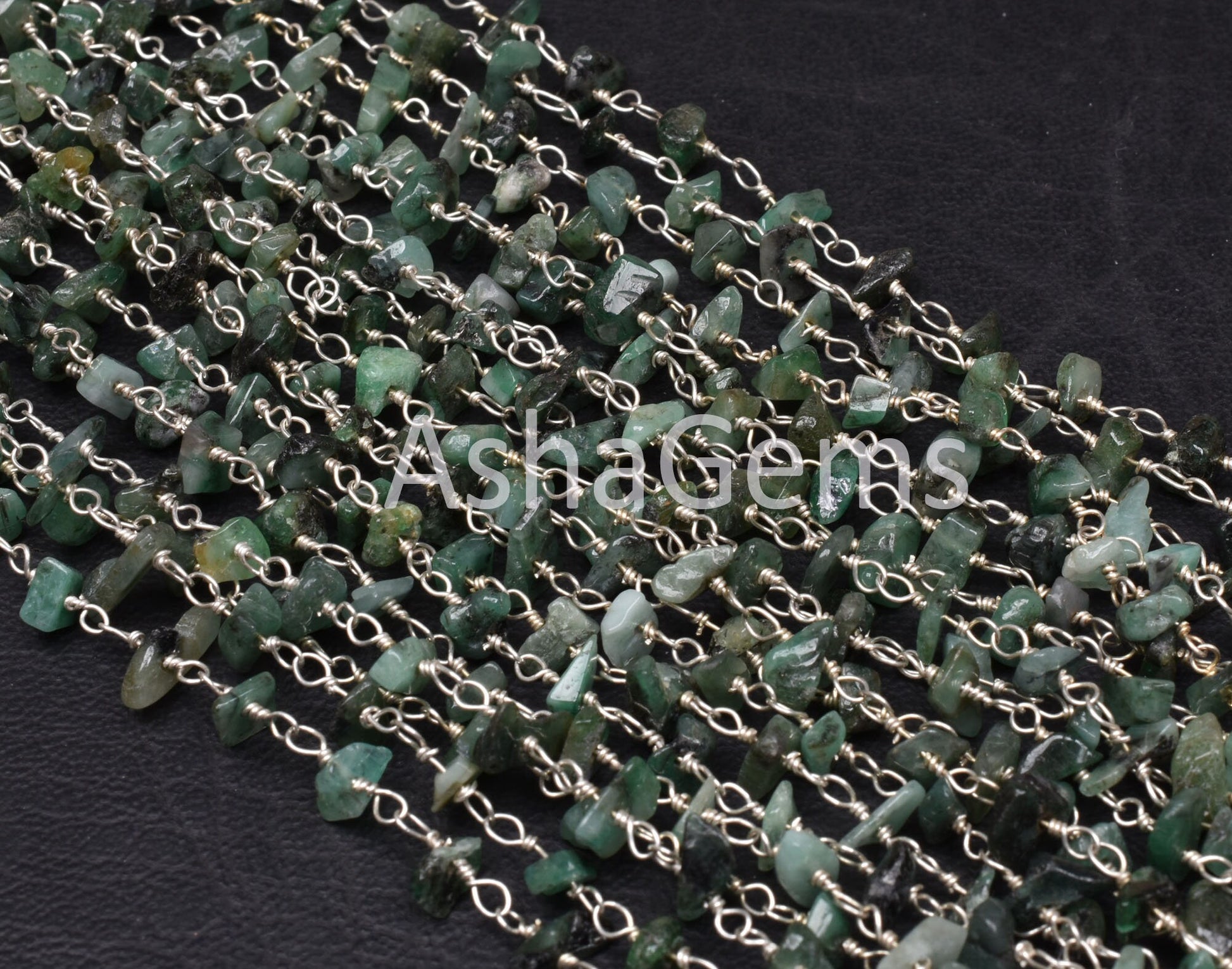 Natural Green Emerald uncut chip Beads Rosary Chain Silver Plated Wire Wrap Emerald Chip Beaded handmade Chains For Jewelry Necklace Crafts