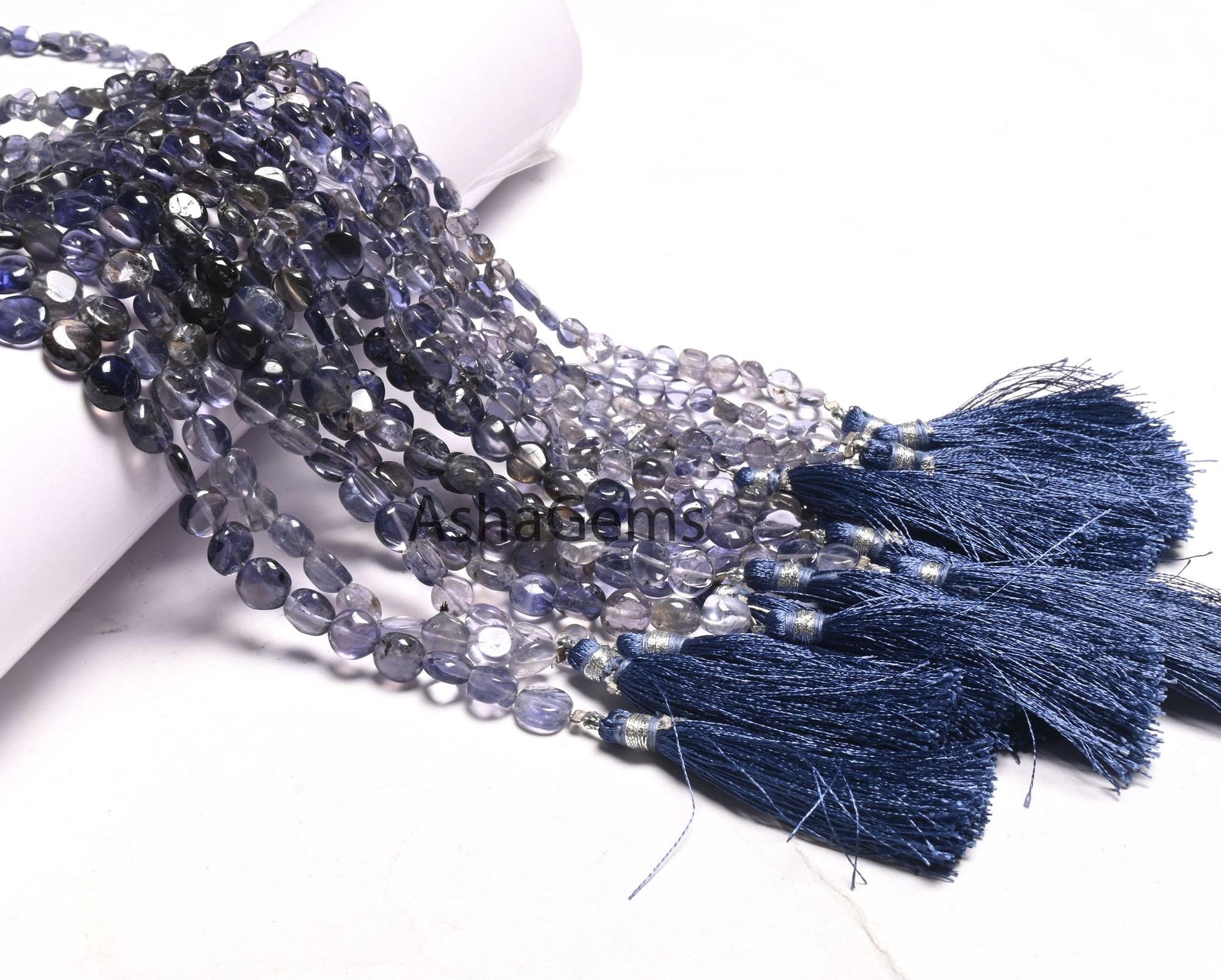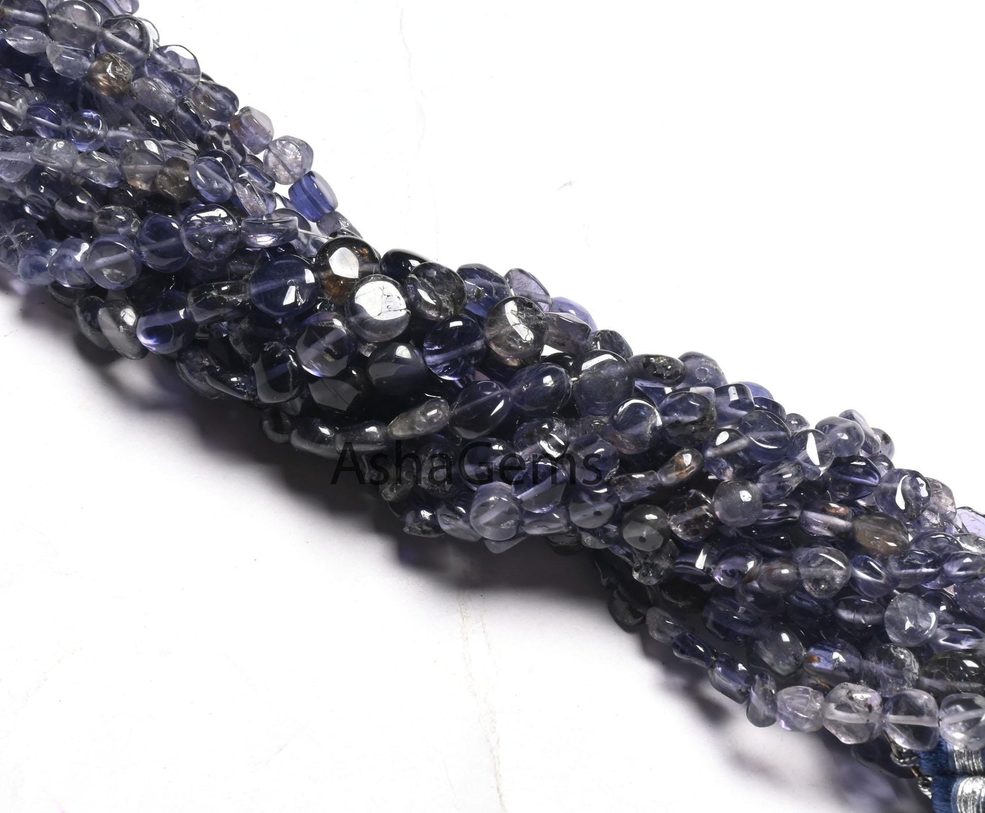 Natural Iolite Smooth Coin Shape Gemstone Loose Beads, Shaded Blue Iolite Plain Handmade Coin Straight Drill Bead, Iolite Beads Jewelry SALE