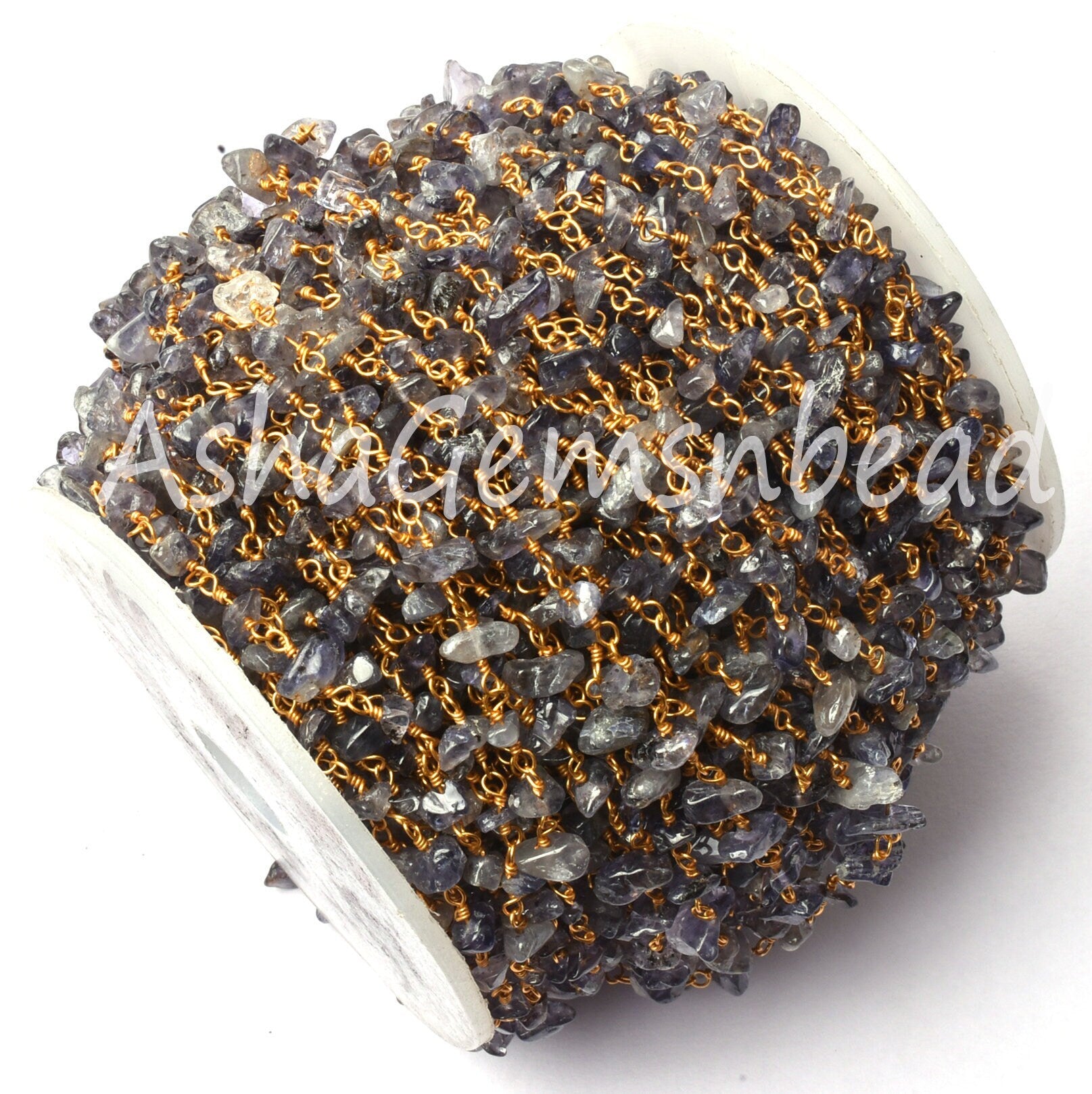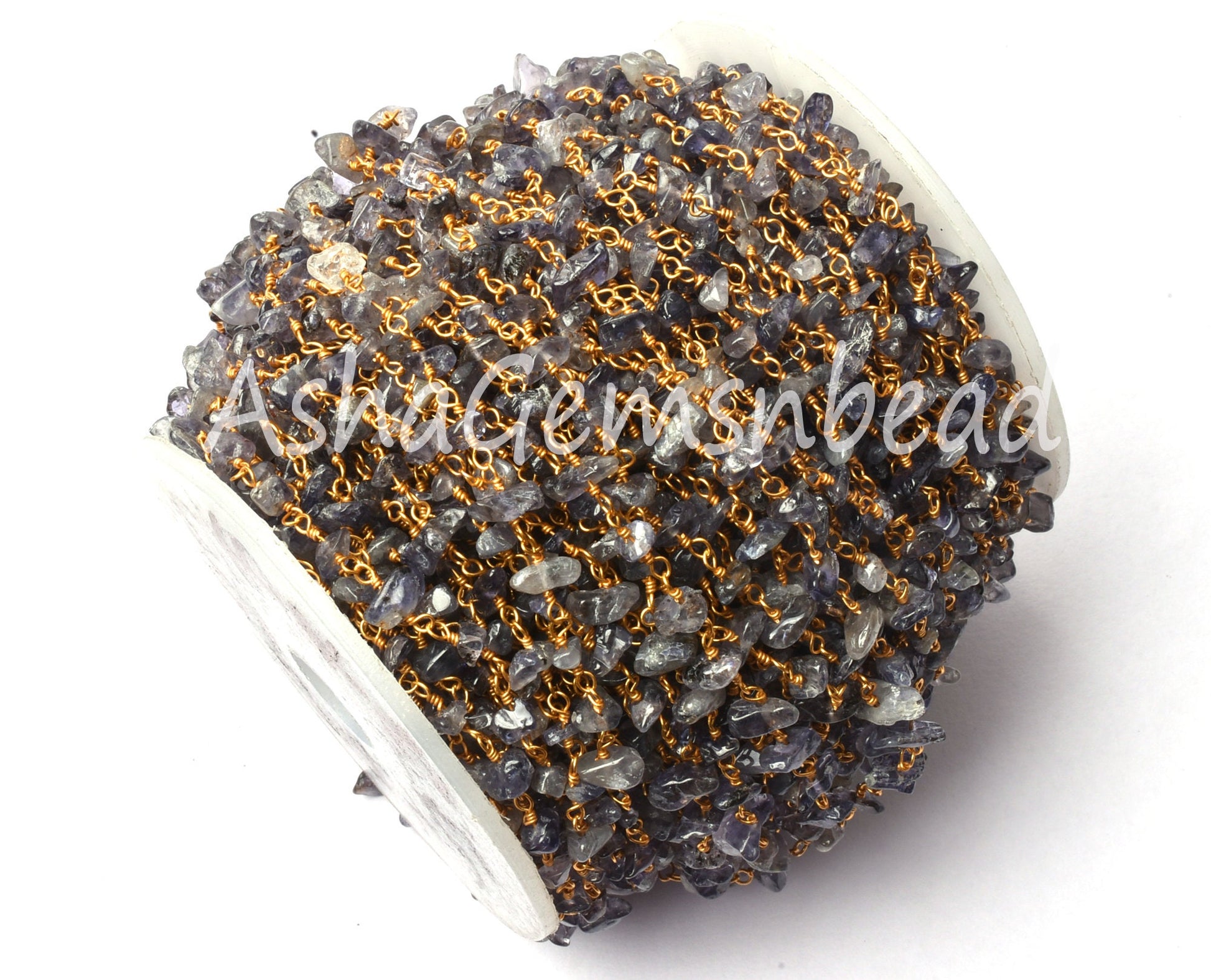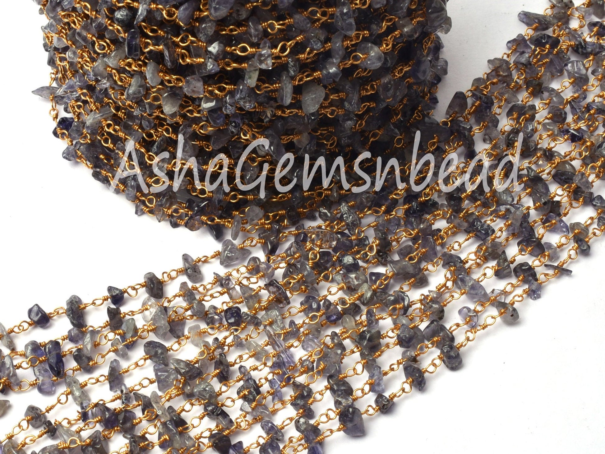 Natural Iolite Uncut Chip Beads Rosary Chain By Feet, Tiny Raw Rough Beaded Chain Gold Plated Wire Wrap Gemstone Chains Jewelry Making Craft