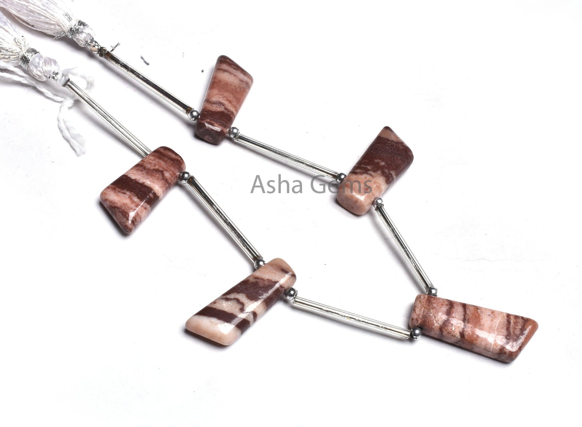 Natural Jasper Smooth Fancy Long Slice Gemstone Side Drill Beads, Picture Jasper Handmade Uneven 7 Shape Side Drill Bead Jewelry Making SALE