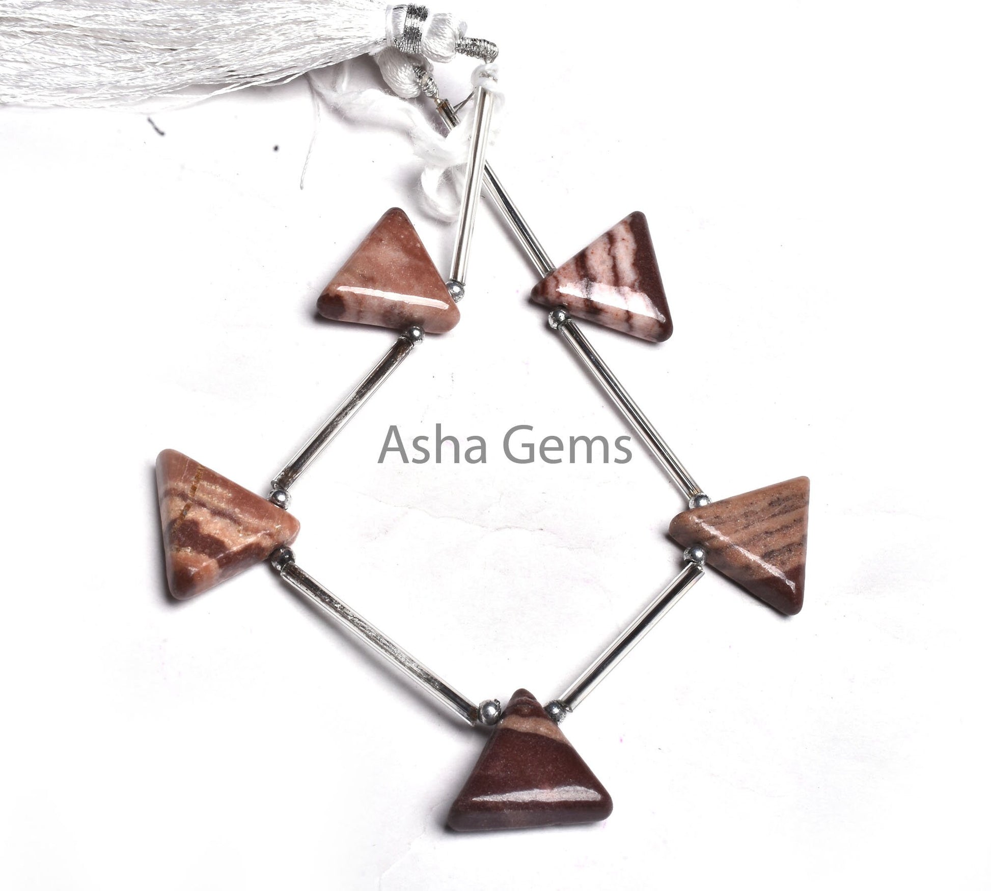 Natural Jasper Trillion Handmade Gemstone Beads, Shaded Brown Jasper Smooth Triangle Side Drill Beads,5Piece Strand Jasper Bead Jewelry SALE