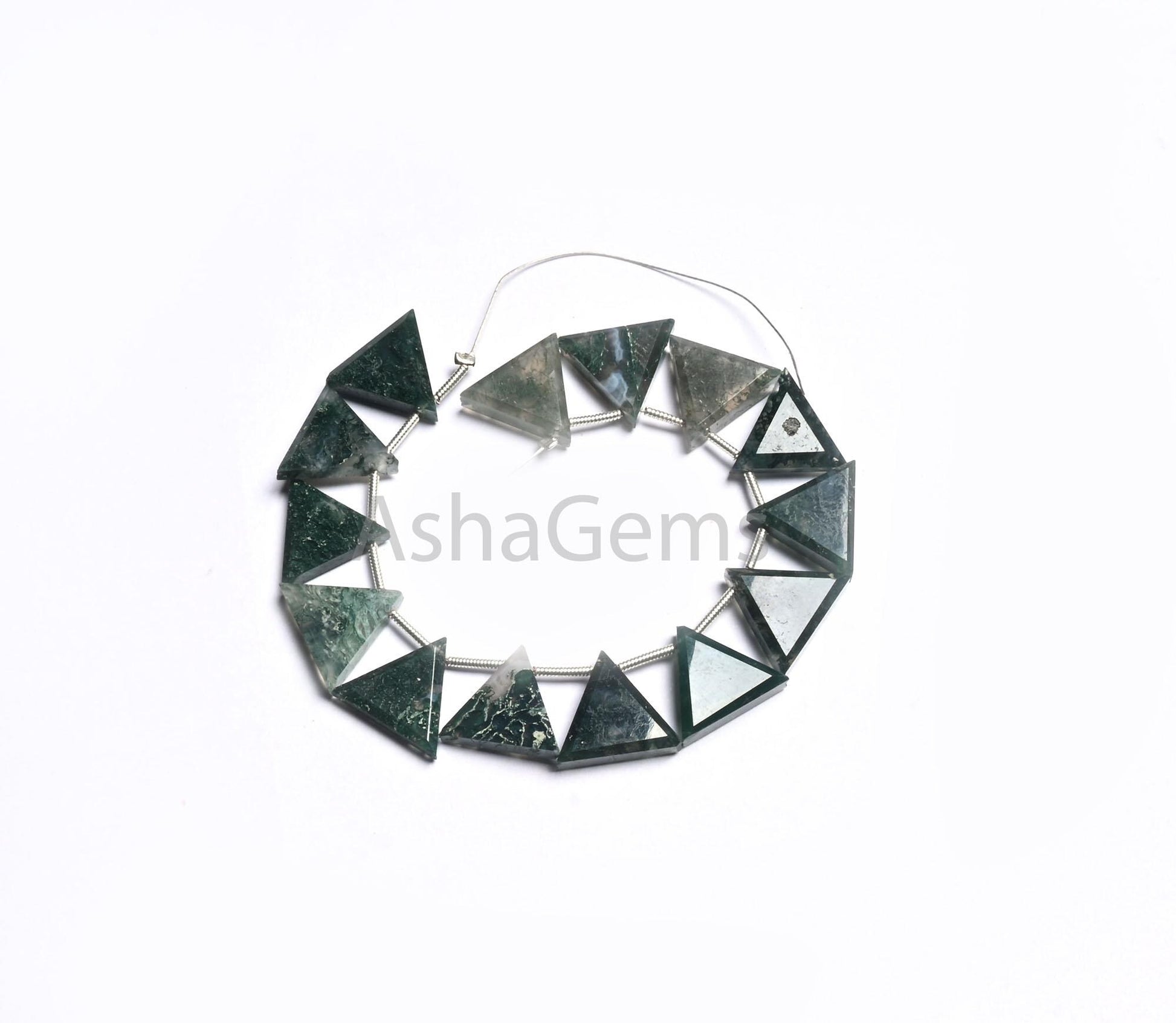 - Natural Moss Green Agate fancy Trillion Shape Gemstone Beads,13-15 mm Rare Moss Agate Fancy Flat table Cut Triangle Side Drill Beads Jewelry'