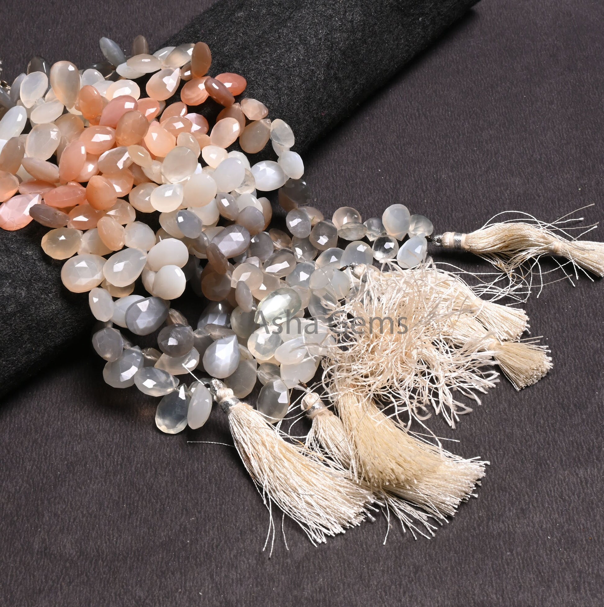 Natural Multi Color Moonstone Pear Shape Faceted Gemstone Beads,8"Strand Shaded Moonstone Briolette Teardrop Moonstone Beads Jewelry makings