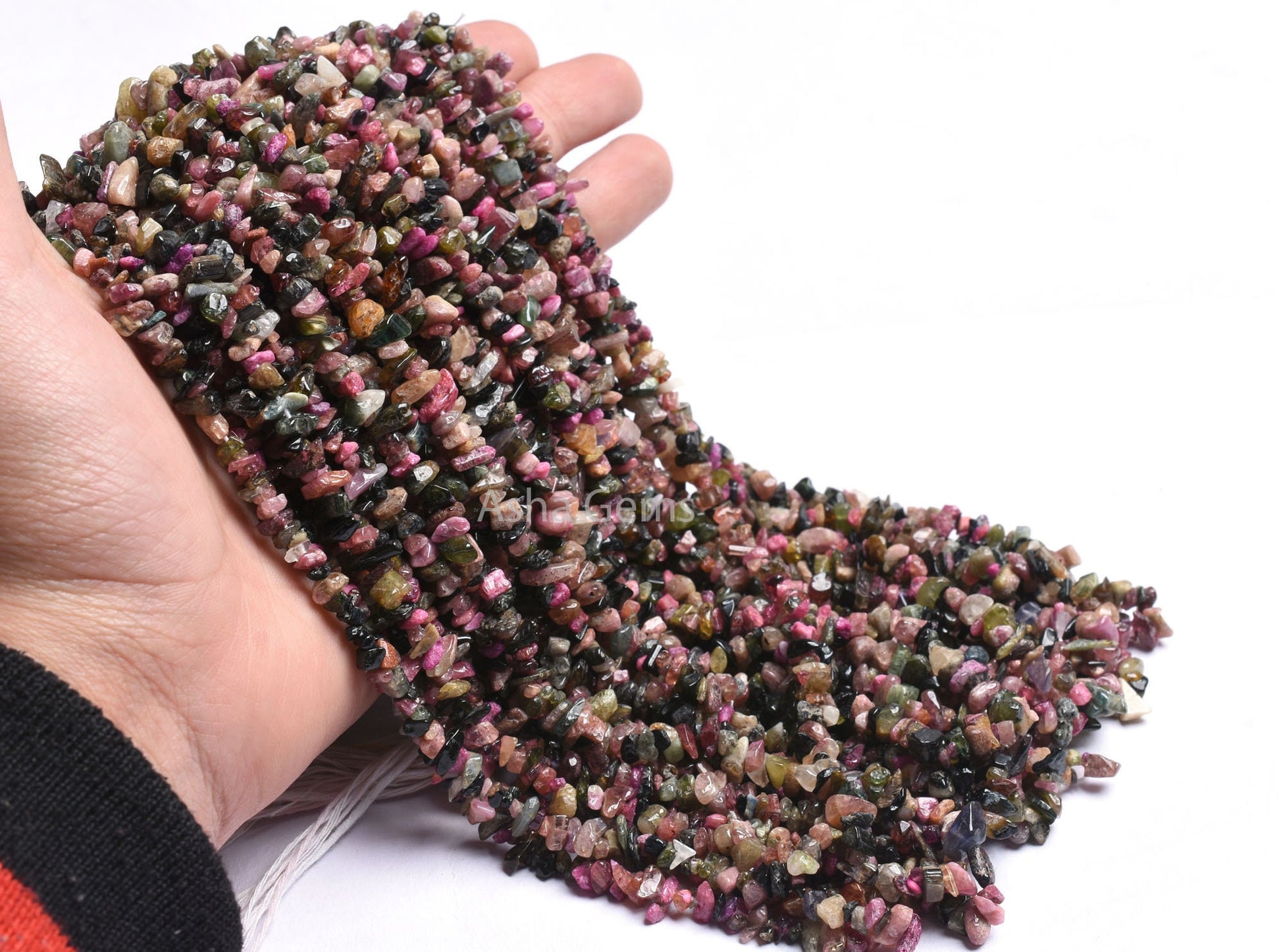 Natural Multi Disco Tourmaline Gemstone Uncut Chips Beads, 17,34" Strand Tourmaline Smooth Raw Rough Beads Jewelry Making Craft Tourmaline