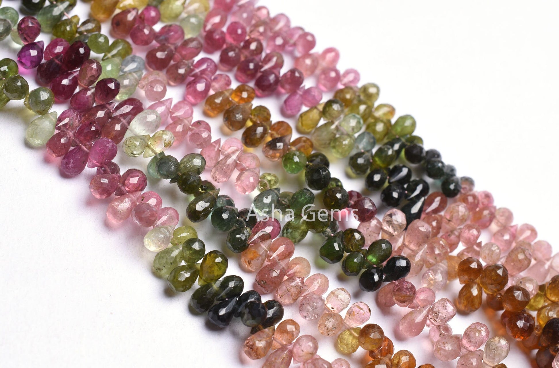 Natural Multi Tourmaline Faceted Drops Shape Gemstone Beads,Fine Tourmaline Beads Tourmaline Side Drill Teardrop Briolette Bead Jewelry SALE