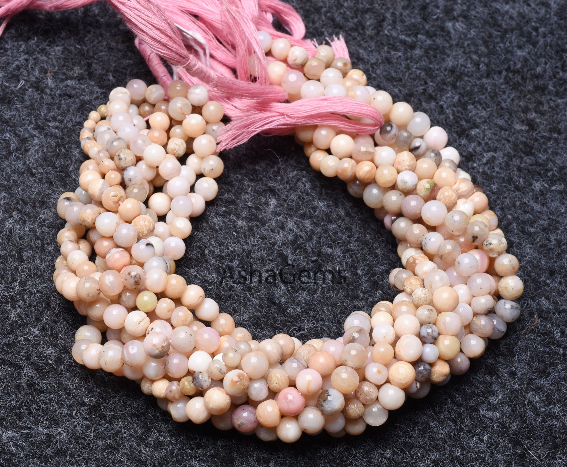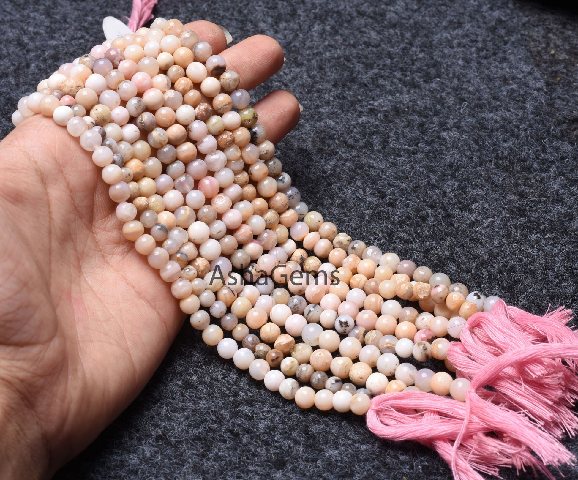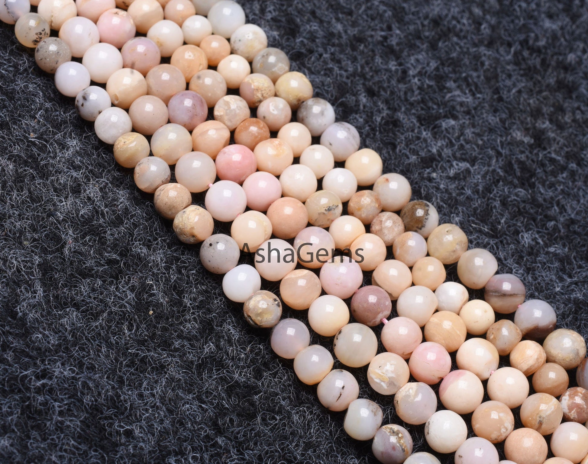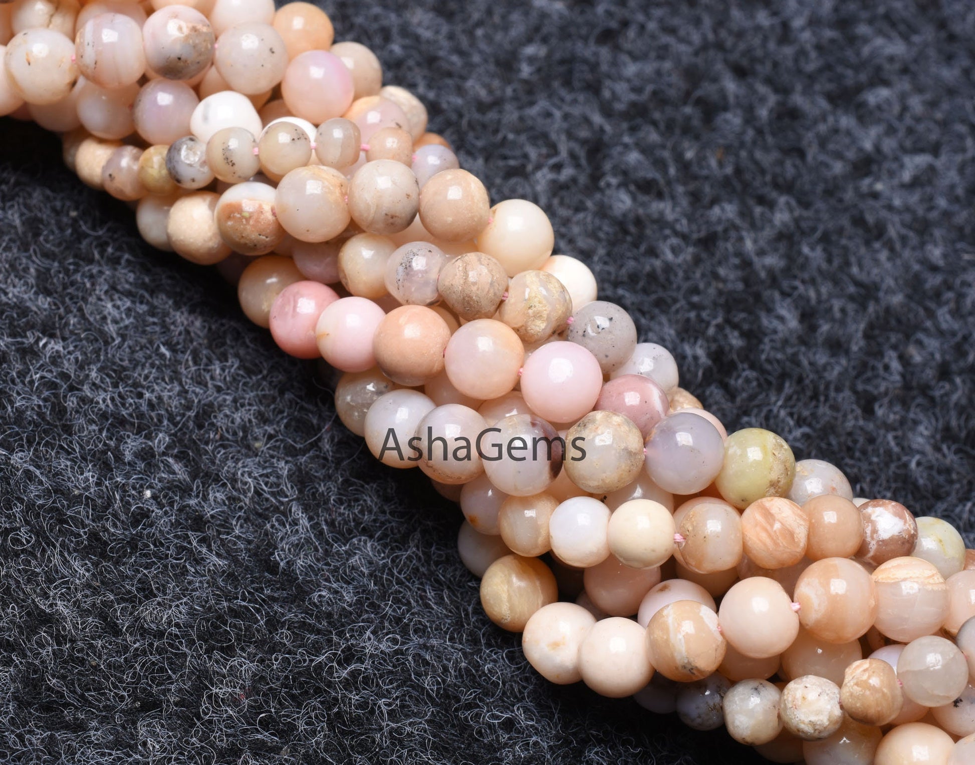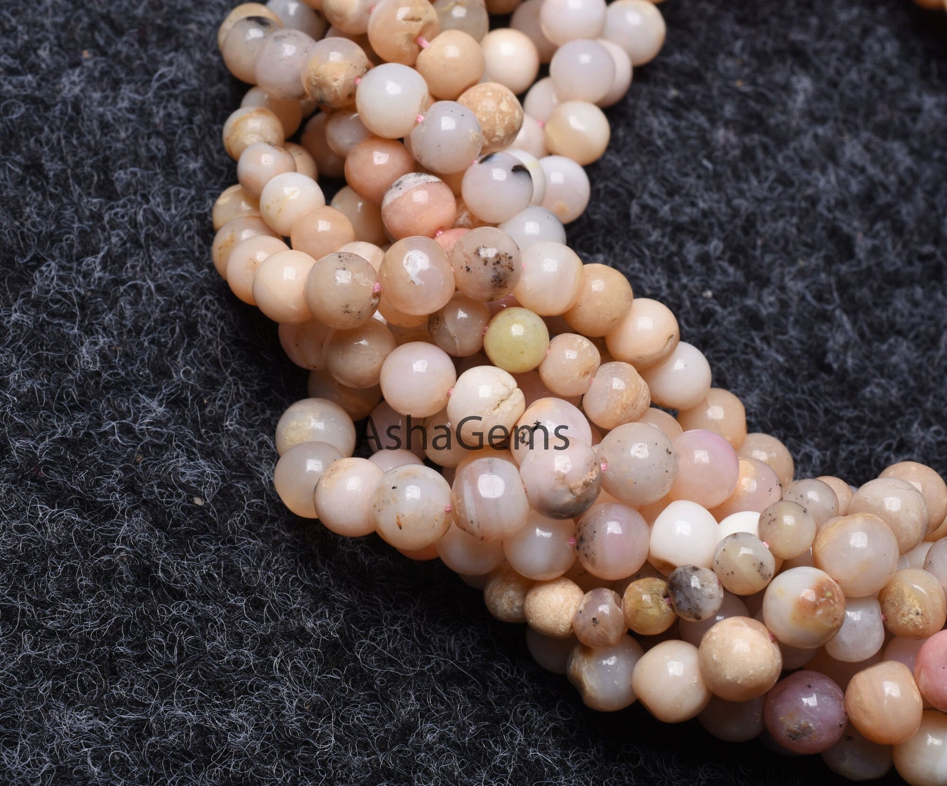 Natural Pink Opal Smooth Round Shape Gemstone Beads, Bio Pink Opal Round Ball Beads,13" Strand Opal Beads For Jewelry Making Craft Sale Opal