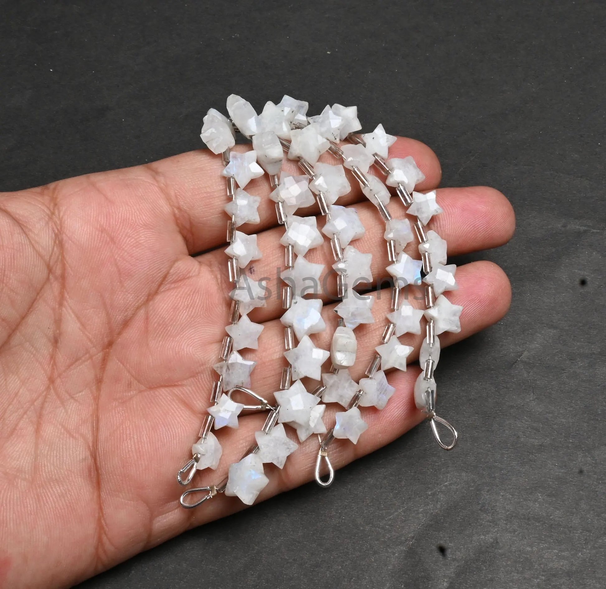 Natural Rainbow Moonstone Carved Star Shape Gemstone Beads, Flashy White Rainbow Faceted Fancy Star Carving Moonstone Bead Jewelry Craft SALE