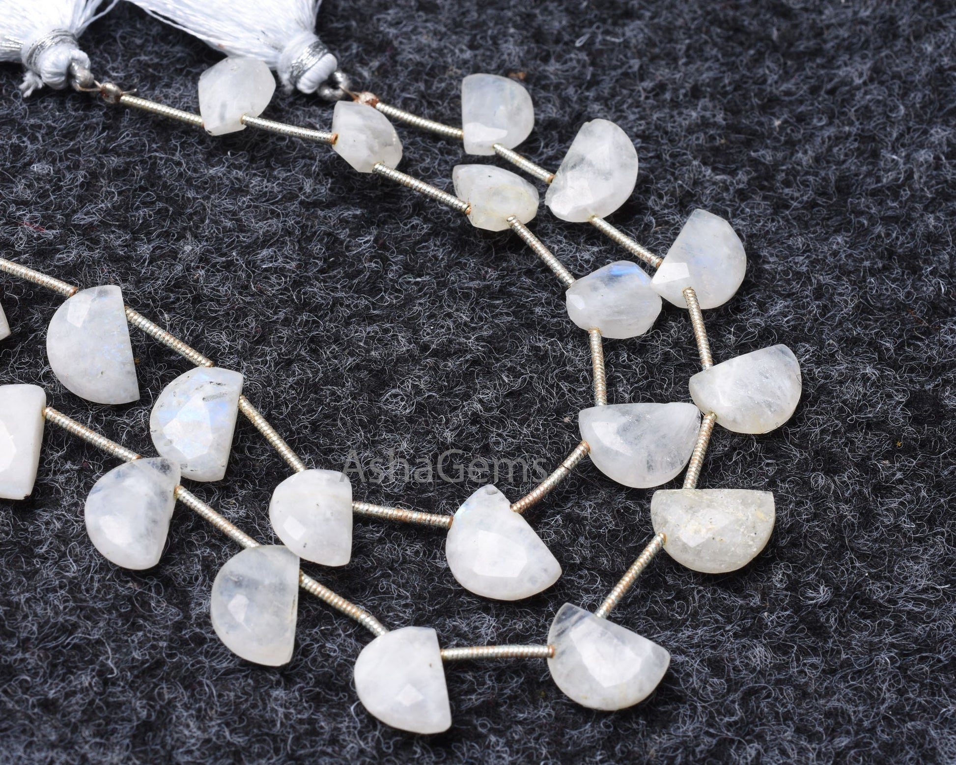 Natural rainbow Moonstone Fancy D Shape Gemstone Beads, Flashy White rainbow Moonstone Faceted Half Moon Briolette Beads Jewelry Craft Sale