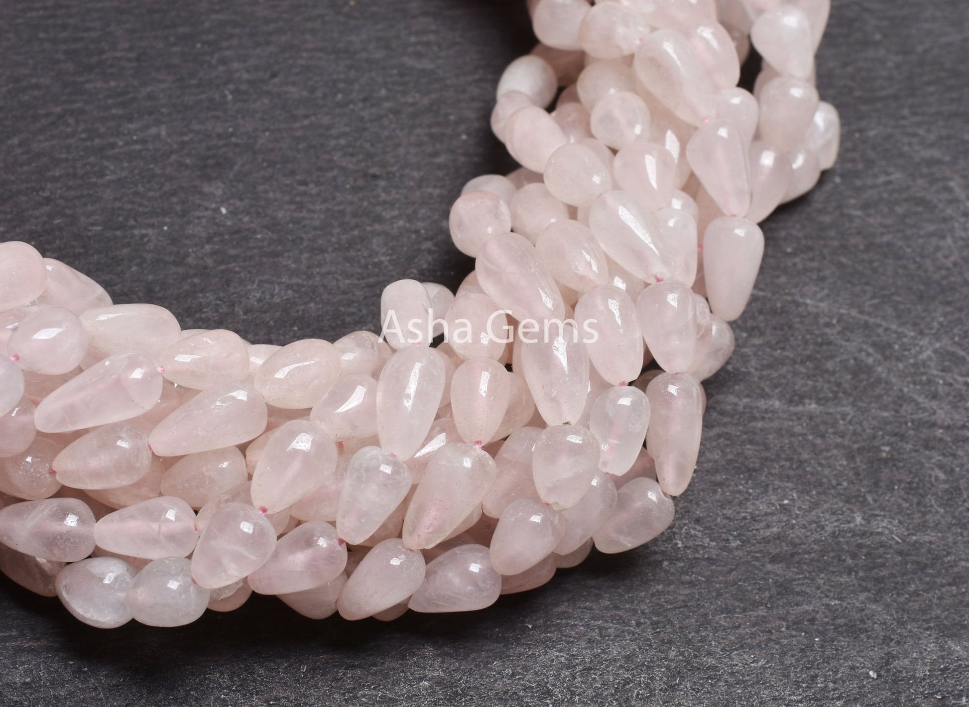 Natural Rose Quartz Smooth Drops Shape Beads, Pink Rose Quartz Teardrop,13 Inch Rose Quartz Straight Drill Drops handmade Beads Handicrafts