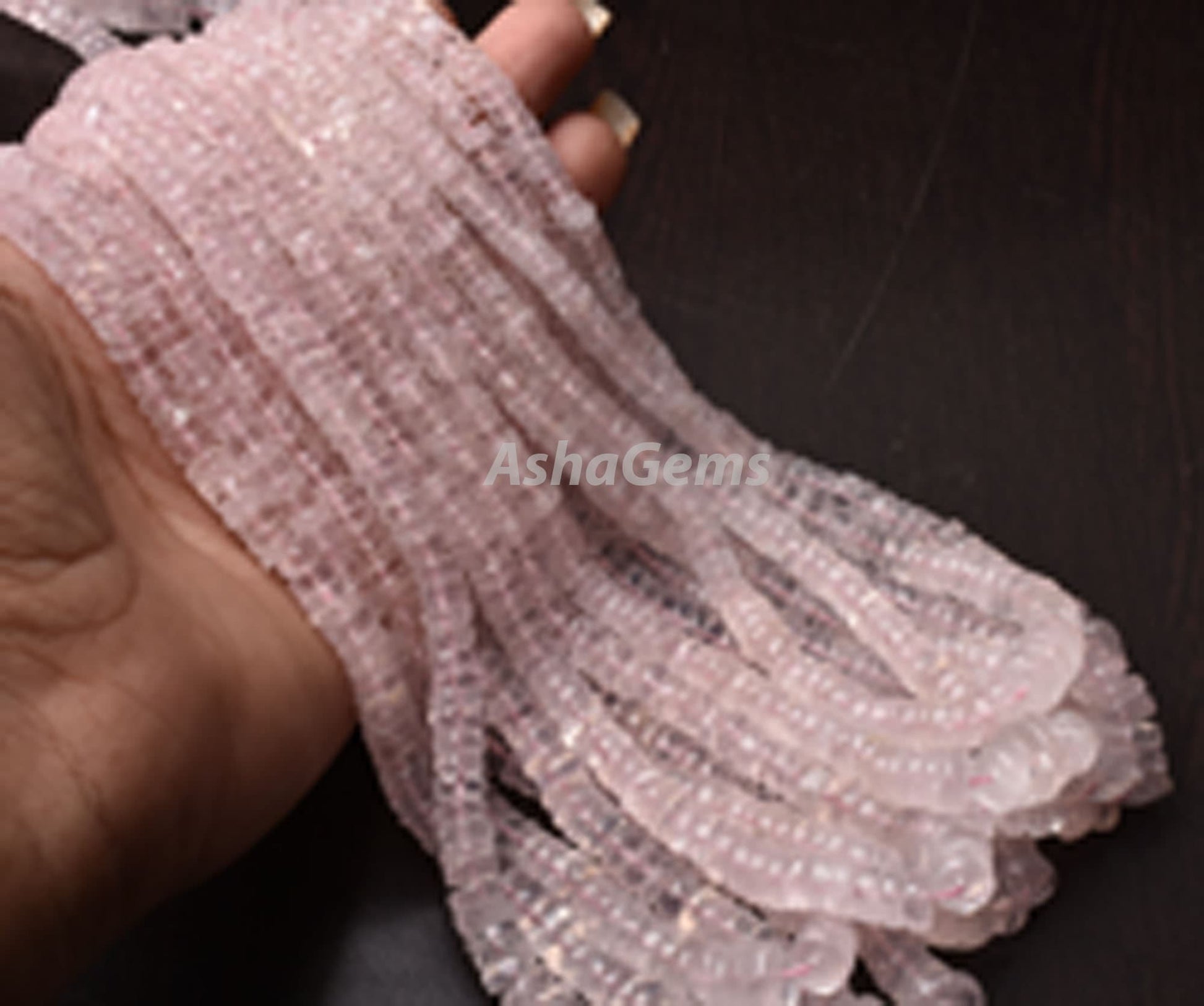 Natural Rose Quartz Smooth Heishi Tyre Gemstone Beads, Pink Rose Quartz, AAA Rose Quartz Bead Heishi Tyre Center Drill Rose Pink Wheel Beads