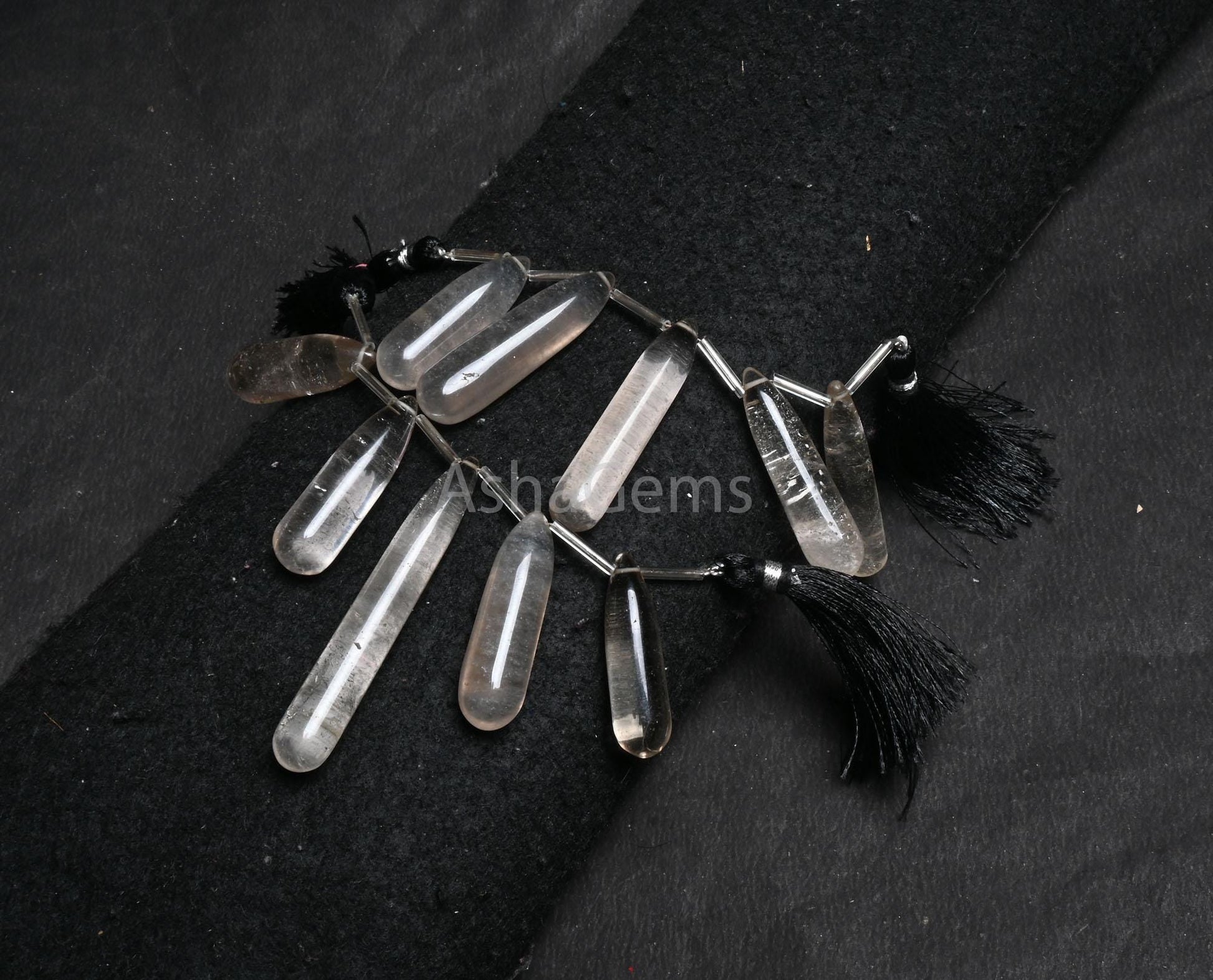 Natural Smoky Quartz Fancy Long Pencil Drop Beads, Smoky Smooth Handmade Teardrop Side Drill Gemstone Smoky Bead For Jewelry Handicraft SALE