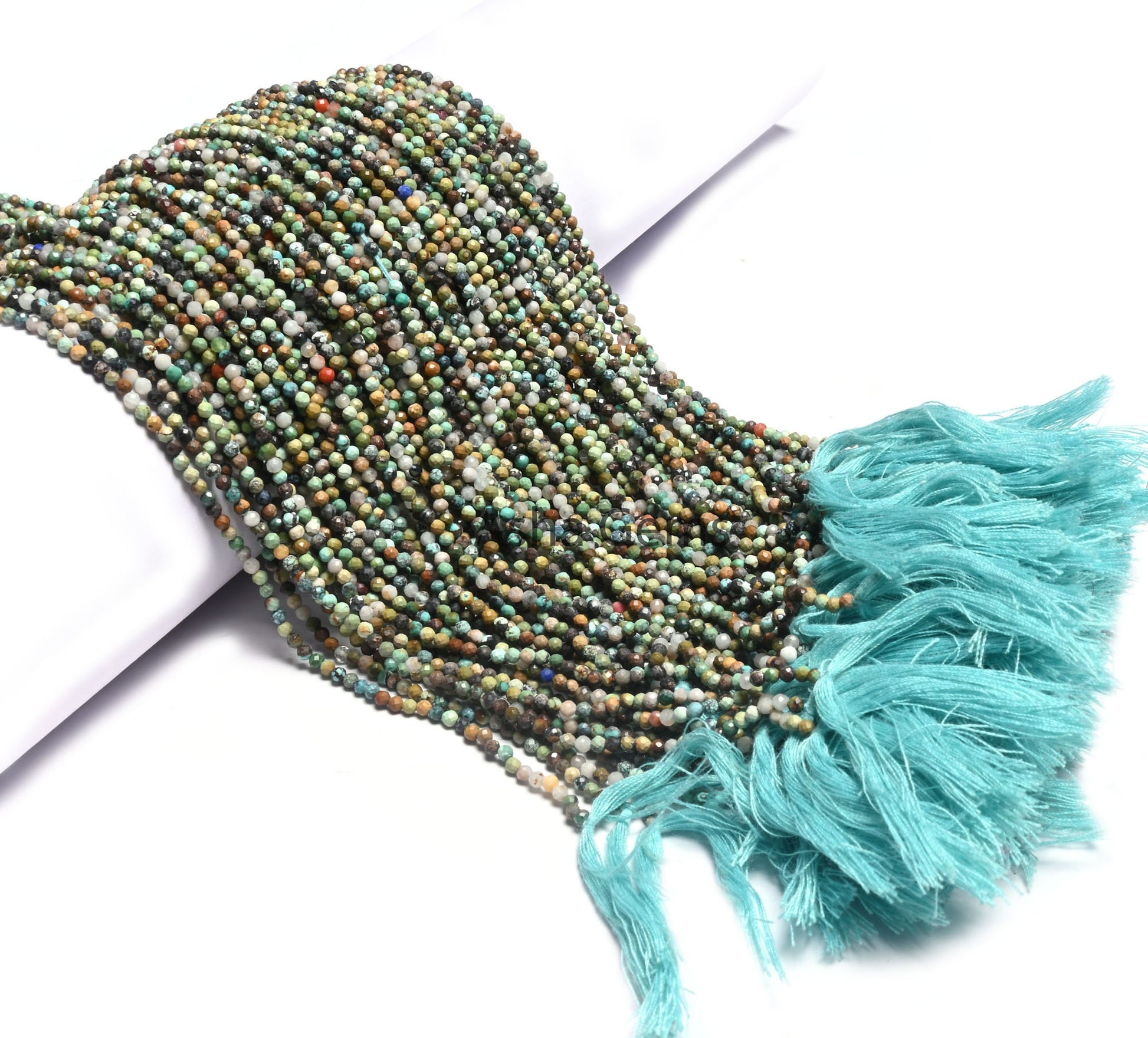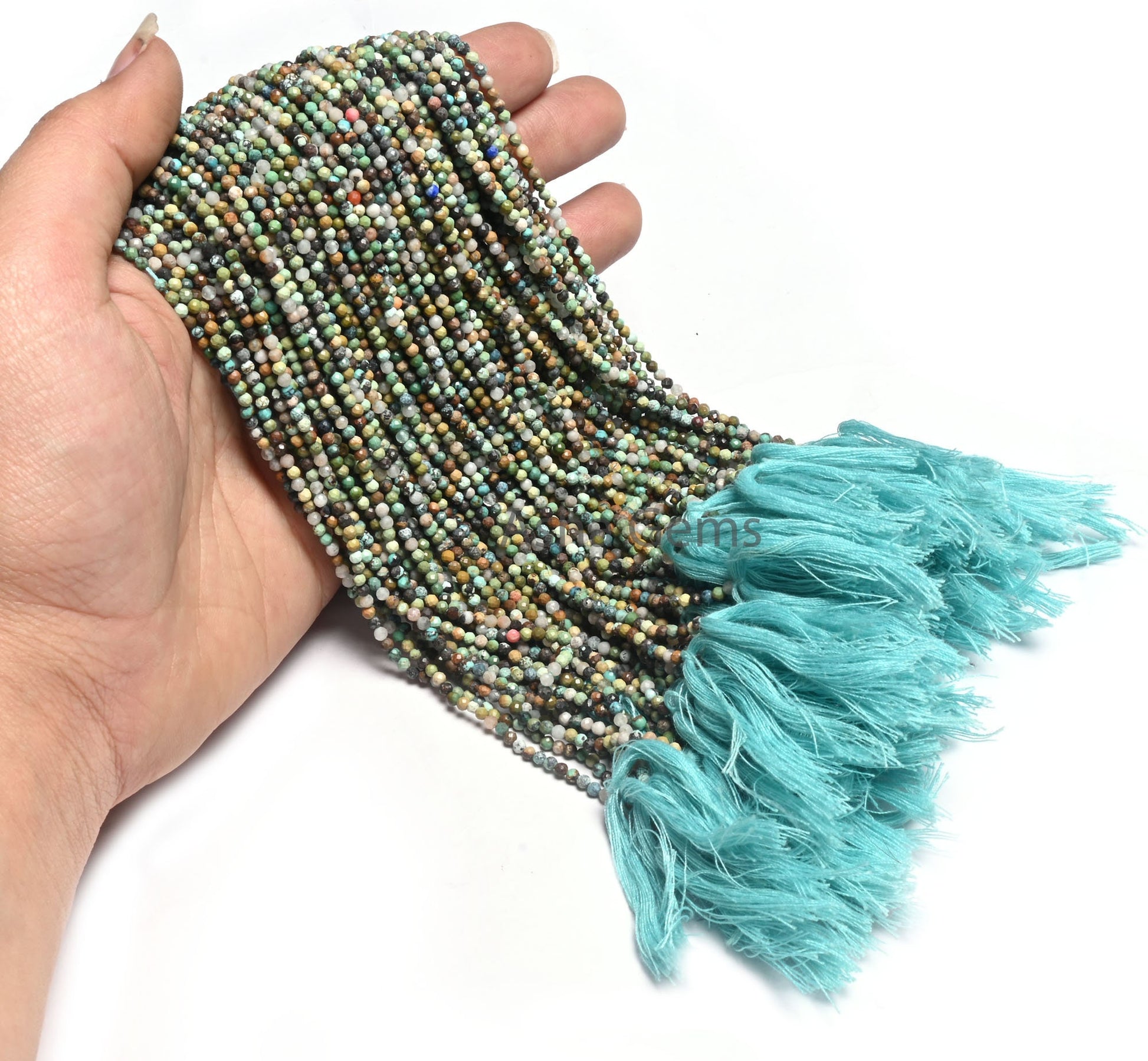 Natural Tibetan Turquoise Faceted Gemstone Beads,2.4mm Shaded Tibetan Blue Turquoise Micro Cut Rondelle Tiny Bead,13" Turquoise Bead Jewelry