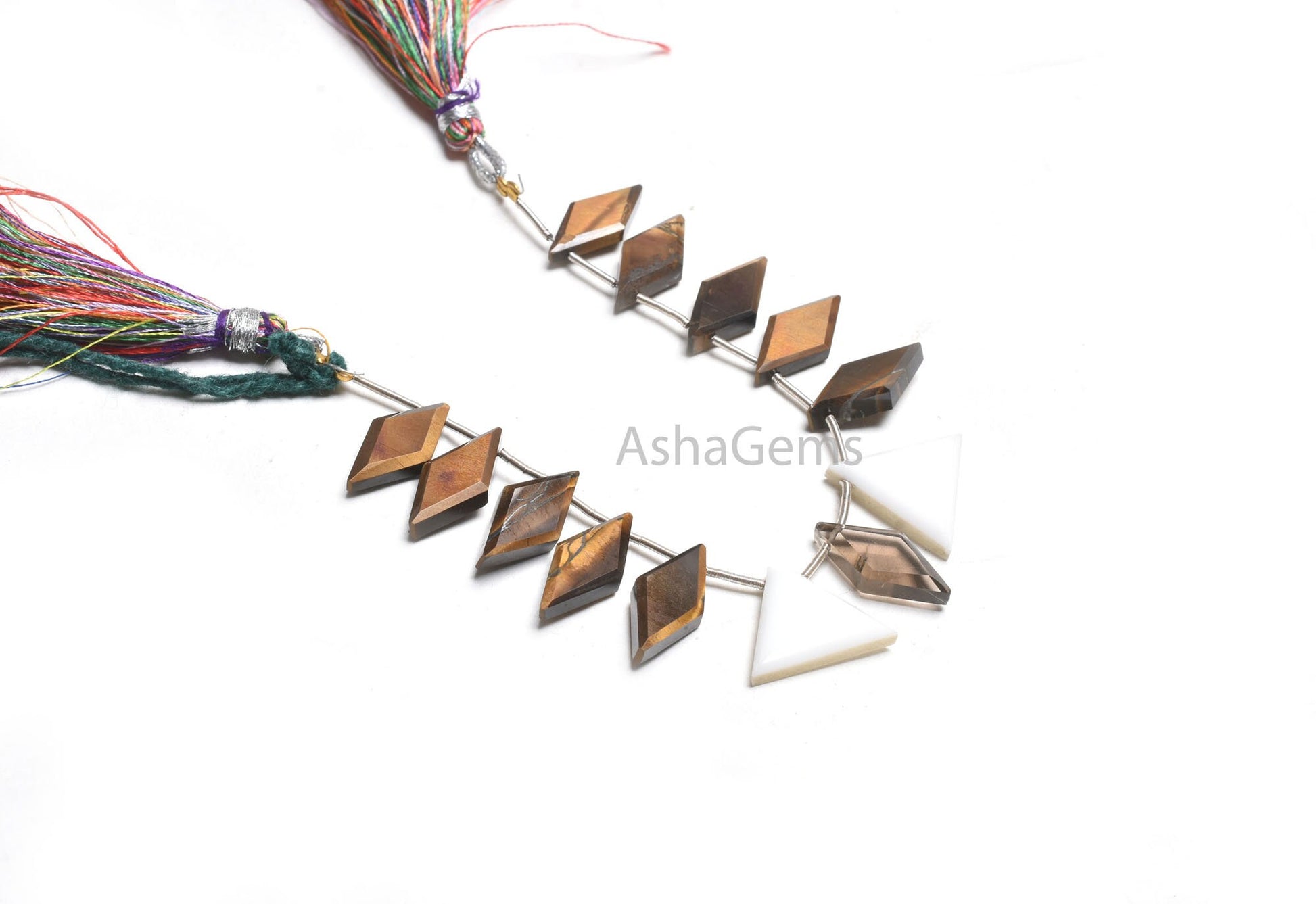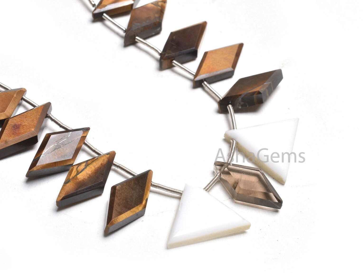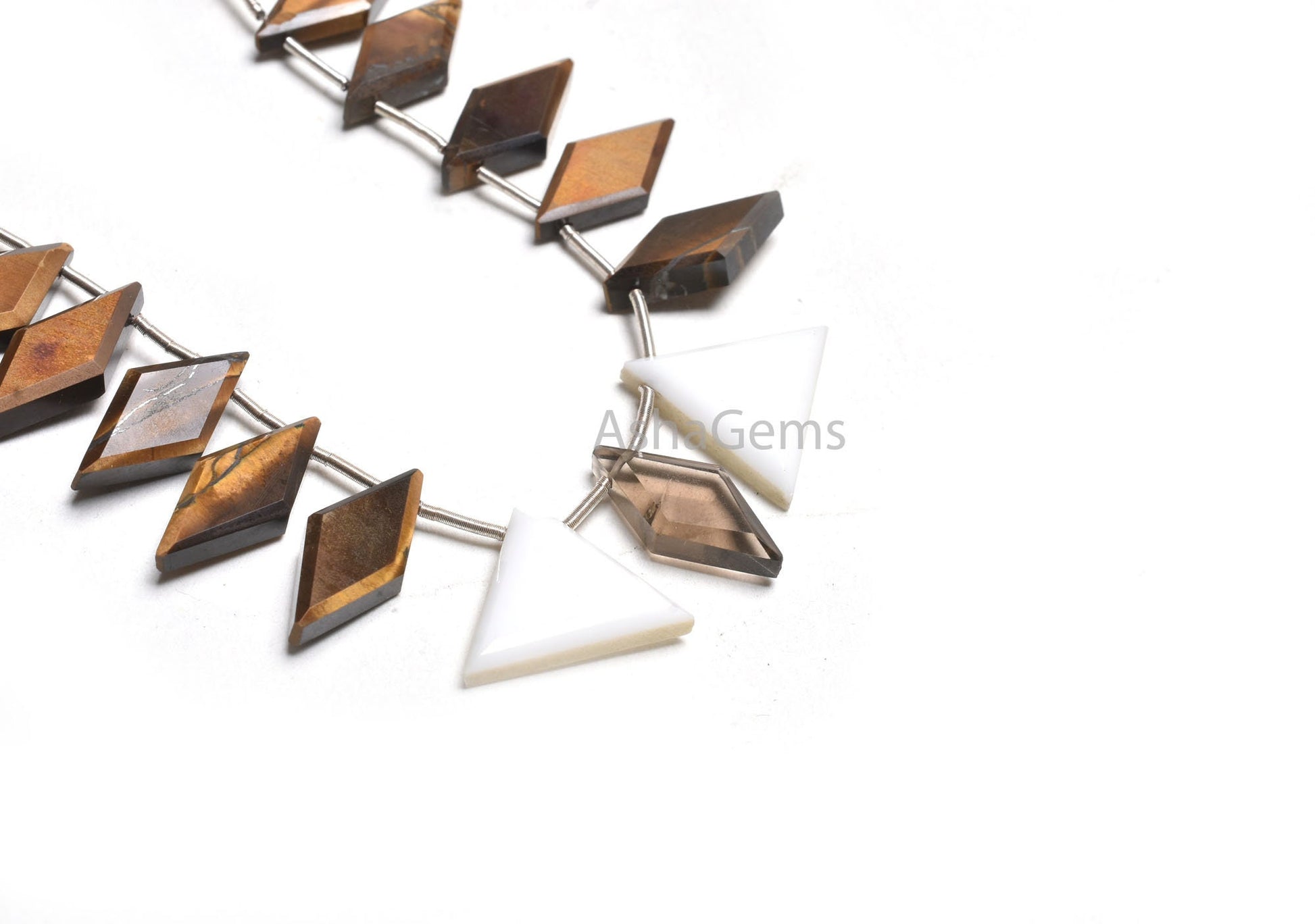 - Shape : Fancy Flat Rhombus ( Tiger Eye) , And 2 Piece Trillion/ Triangle ( White Agate )