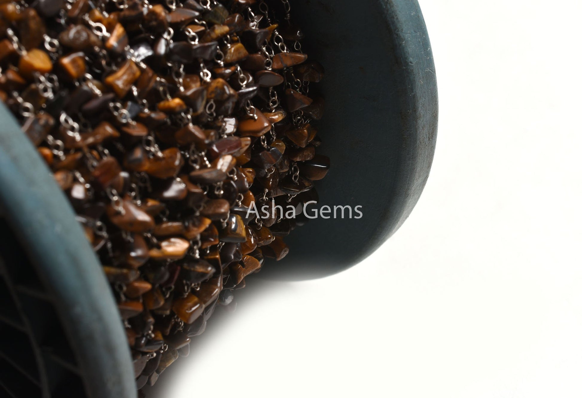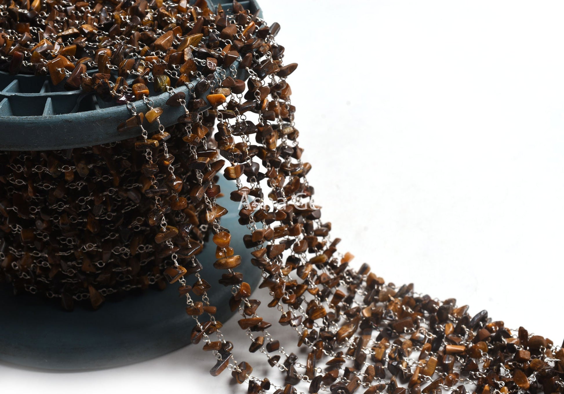 Natural Tiger Eye Uncut Chip Beads Rosary Chain Smooth Uneven Nugget Silver Plated Wire Beaded Chain Chip Gemstone Beads Chain Jewelry Craft