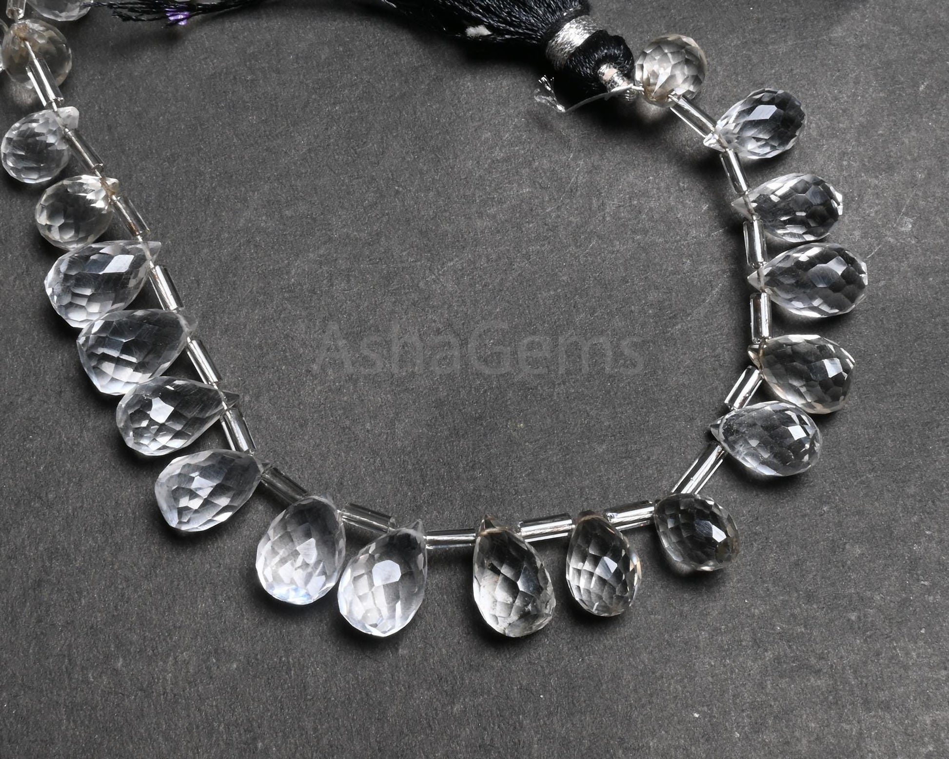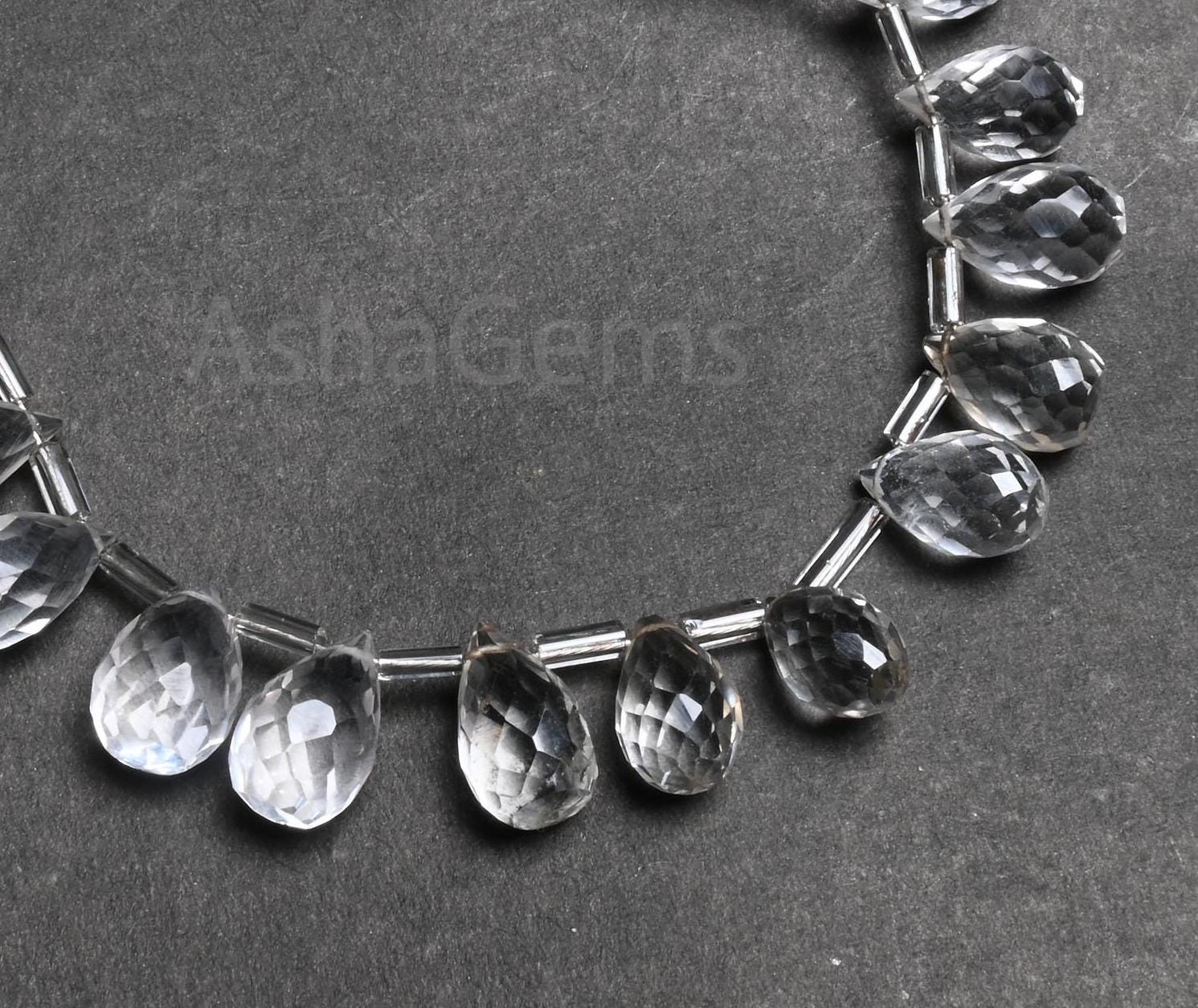 Natural White Crystal Quartz Faceted Drop Beads, Fine Quality Crystal Side Drill Teardrop Briolette Gemstone Beads Jewelry making Craft SALE