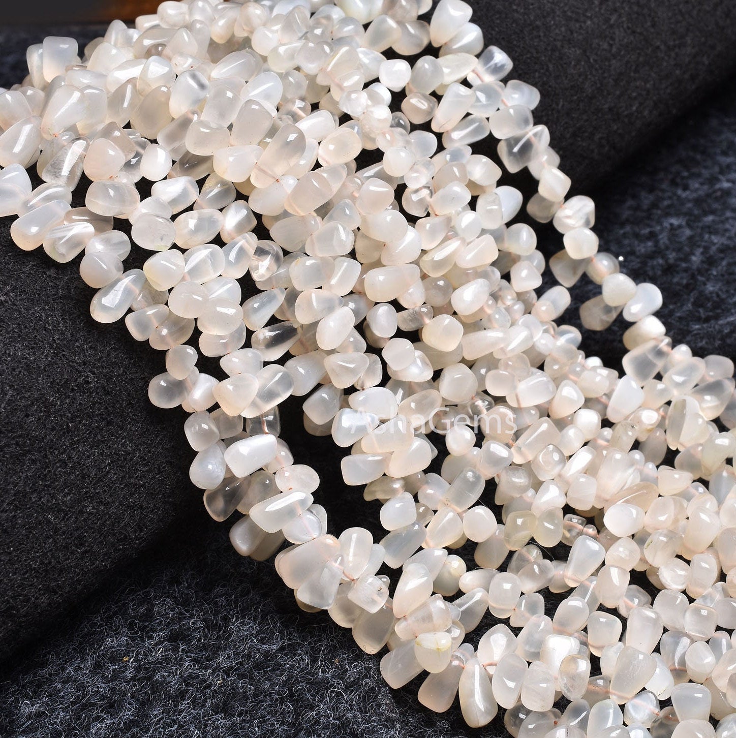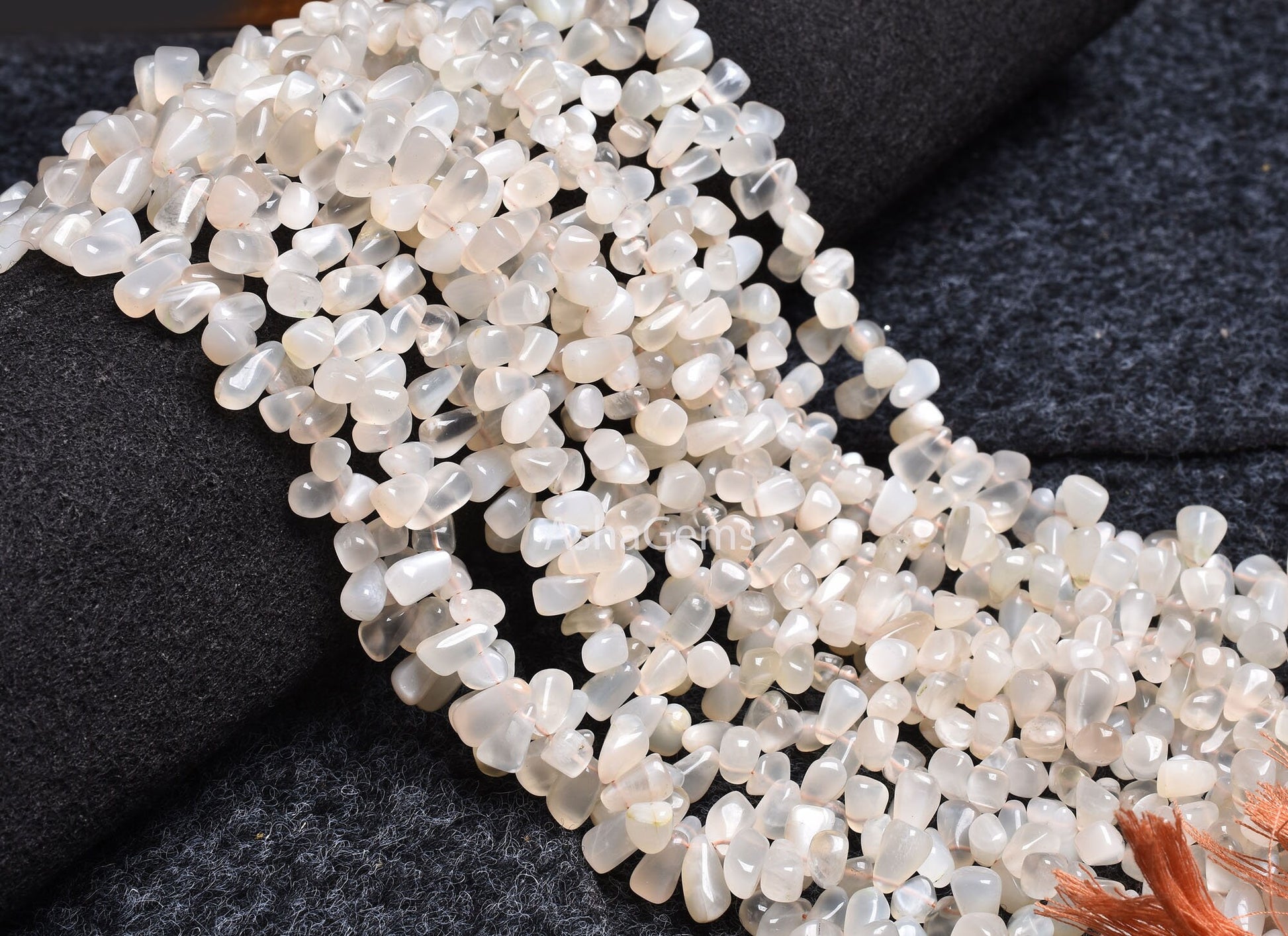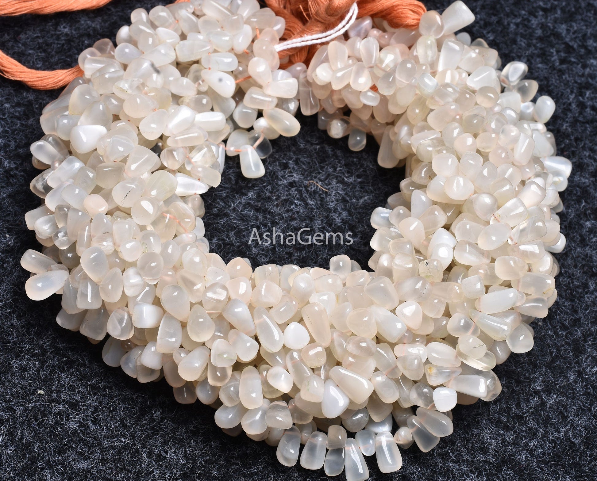 Natural White Moonstone Smooth Uneven Drops Shape Gemstone Beads, Milky White Moonstone Side Drill Drops Handmade Bead, Moonstone Teardrops