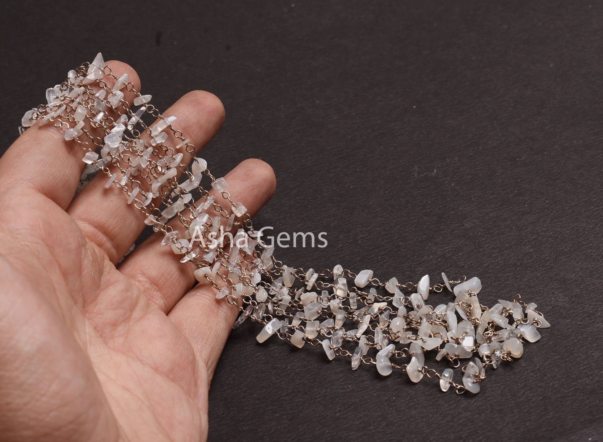 Natural White Moonstone Uncut Chip Beads Rosary Chain, Gemstone Beaded Chain Silver Plated Wire Roll handmade Chain Jewelry Necklace Crafts