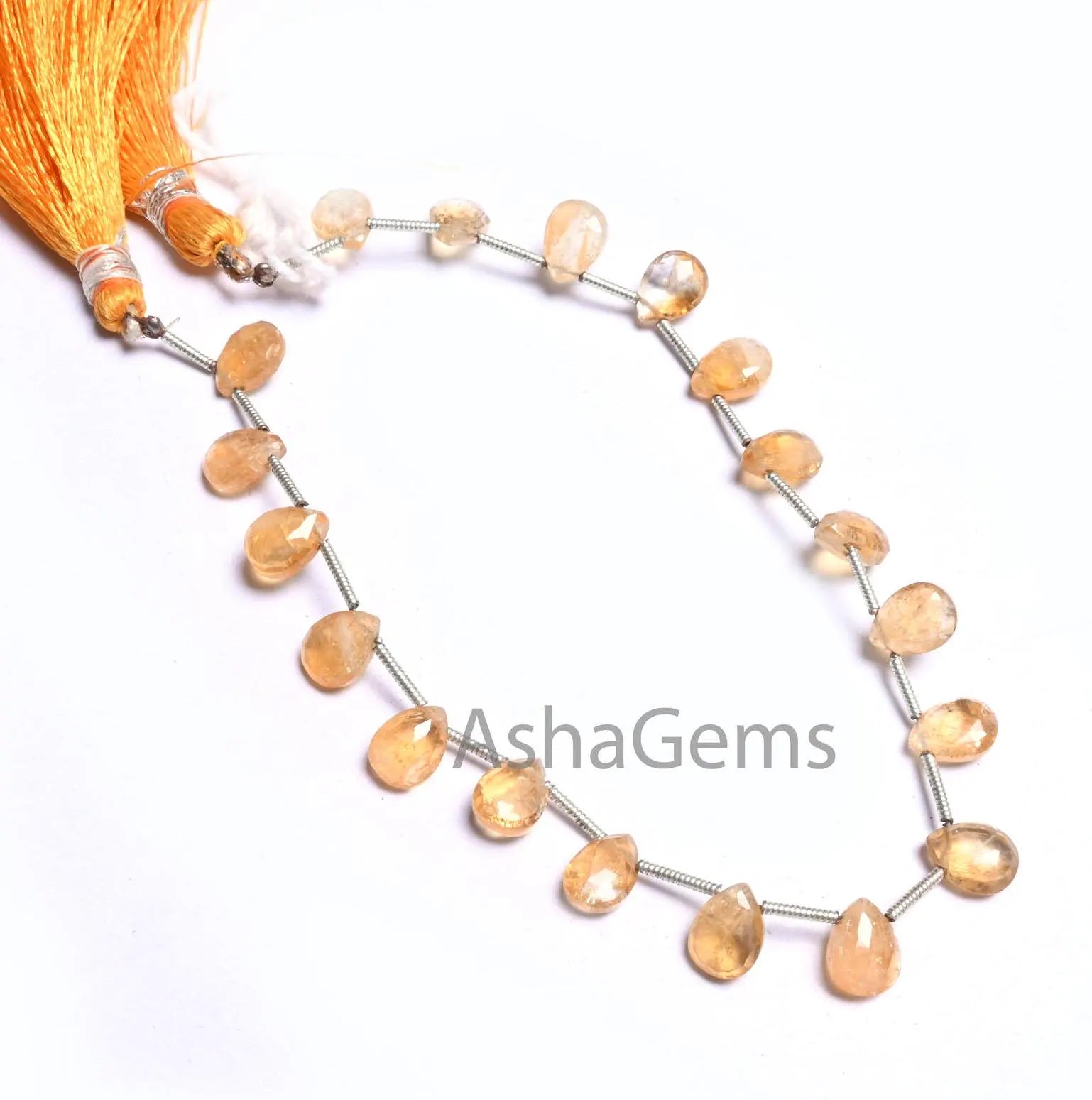 Natural Yellow Citrine Faceted Pears Shape Beads Gemstone Citrine Quartz Flat Teardrop Briolette Beads Side Drill Citrine beads jewelry SALE